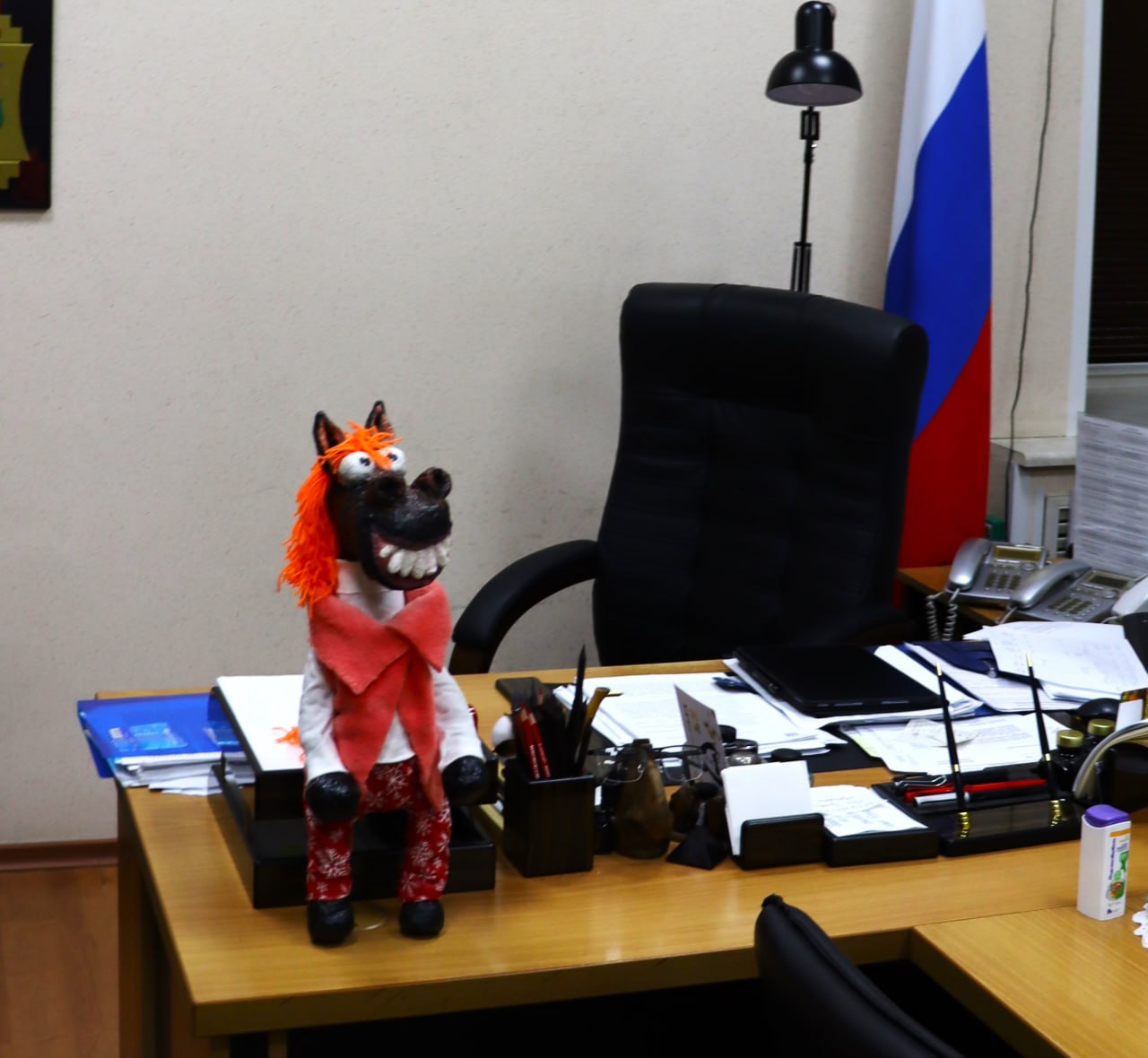 Теперь конь «припарковался» в кабинете руководителя администрации Советского района Дениса Семёнова. За это оригинальное воплощение символа 2026 года Виктория Быкова, ученица 2 класса школы №60, получила специальный приз. Награждение состоялось сегодня, 19 декабря, в сквере Карла Маркса на открытии главной городской ёлки.