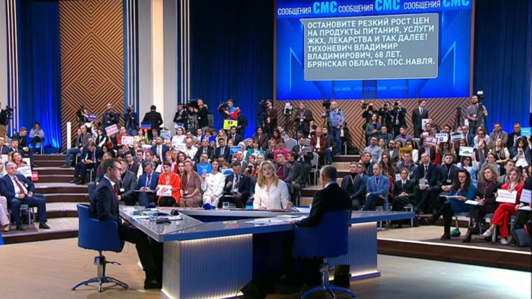 Во время прямой линии президента на большой экран справа от главы государства в поле его зрения вывели обращение брянского пенсионера, который обратился с призывом остановить резкий рост цен на самое жизненно необходимое.