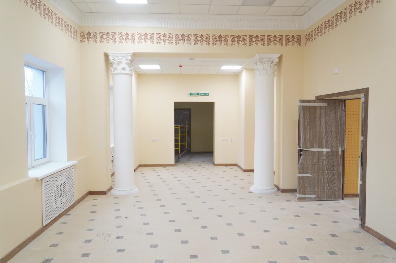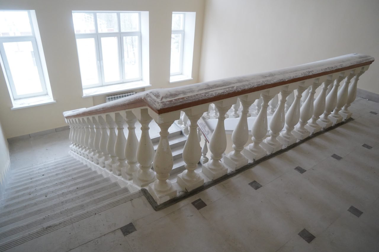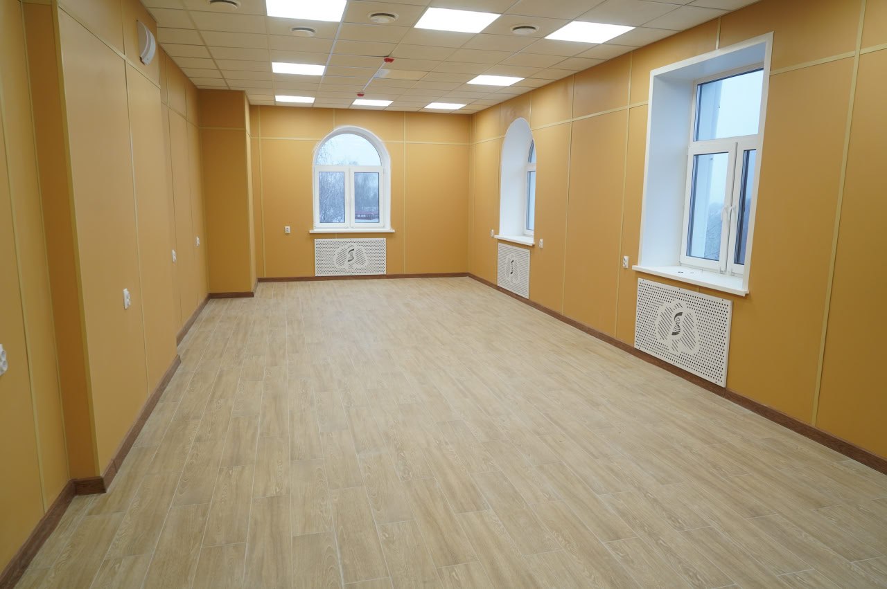 За такое короткое время, всего за восемь месяцев, сделано практически новое здание, выполнен огромный объем работы. Полностью готовы учебные аудитории на четвертом и третьем этажах, скоро здесь начнут расставлять мебель и оборудование, на других этажах работы близятся к завершению.