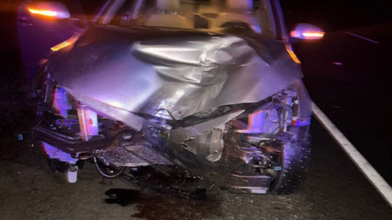 В сети появились кадры с места аварии, произошедшей ночью. На фотографиях видно сильно поврежденное транспортное средство.