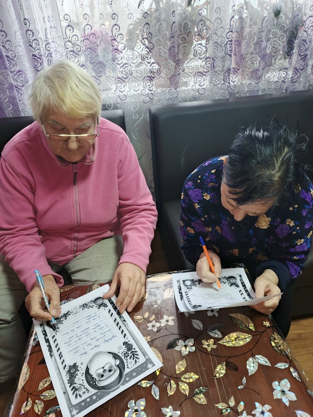 Для проживающих этот праздник особенный, они с огромным желанием пишут письма Деду Морозу со своими пожеланиями. У каждого проживающего конечно свое желание, но есть два желания которые просили все проживающие: это здоровья себе и мира на планете. Так пусть же Дед Мороз исполнит их желания.