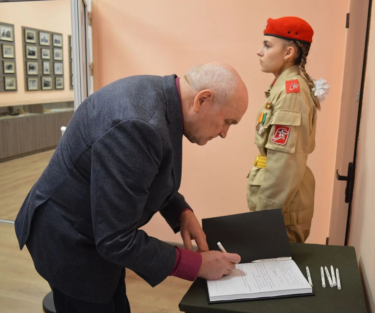 Заведующая музеем В.М. Исайкина провела ознакомительную экскурсию по обновленному музею, затем гости сделали записи в Книге посетителей музея.