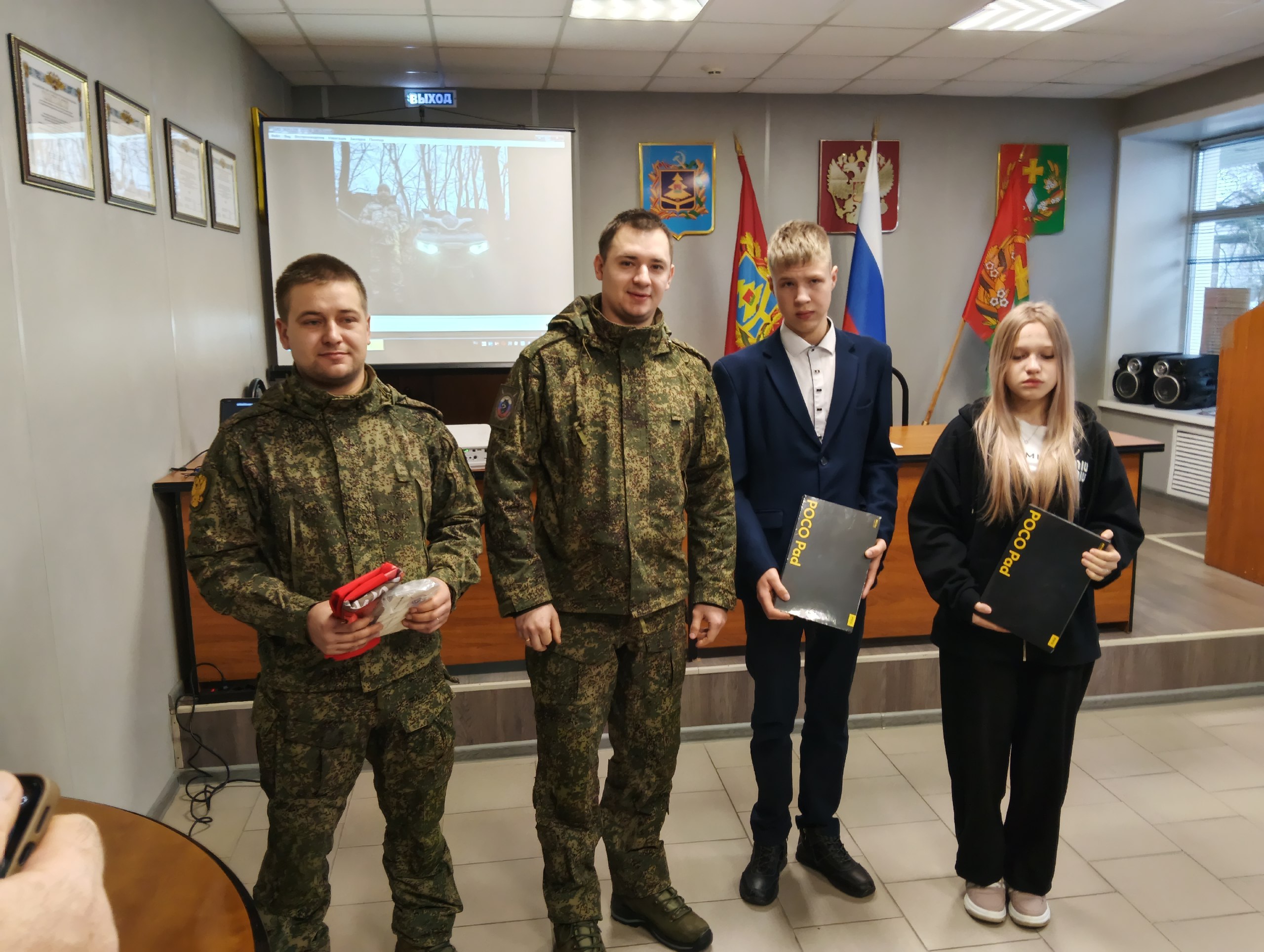 В начале совещания было предоставлено слово офицерам 9 мотострелкового полка, которые не по наслышки знают об СВО, а приехали с линии боестолкновения, чтобы поблагодарить жителей Погарского района за отеческую поддержку ребят на передовой и вручить новогодние подарки школьникам, живущим в приграничных населенных пунктах. Были вручены Благодарности от 9 мотострелкового полка Борщовской и Кистёрской школам за неоценимую поддержку и гуманитарную помощь, оказанную военнослужащим в период выполнения боевых задач. Молодые офицеры искренне и душевно поблагодарили всех неравнодушных жителей района за помощь солдатам на передовой, за обеспечение их всем необходимым для поддержания боеспособности и поднятия боевого духа. Ученику Кистёрской школы Рубану Илье и ученице Витемлянской школы Сывых Диане офицеры вручили новогодние подарки — планшеты.