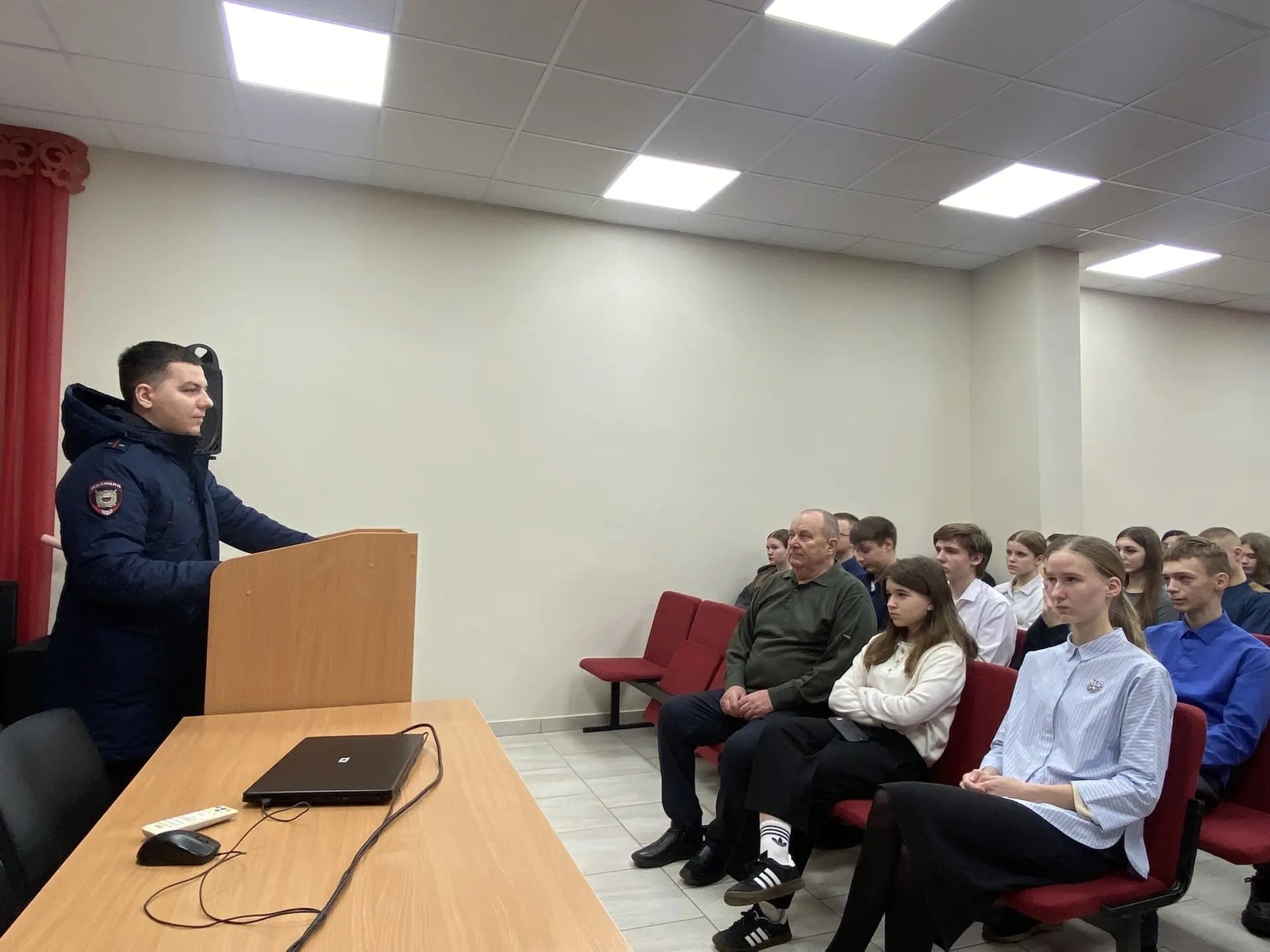В Выгоничской школе состоялась важная встреча для обучающихся 9-х классов с лейтенантом полиции, оперуполномоченным Тимошенко Э.Э. На мероприятии обсуждались ключевые темы, касающиеся безопасности и правопорядка.