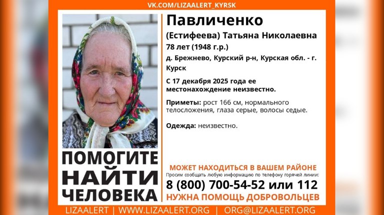 О местонахождении жительницы деревни Брежнево Курской области ничего неизвестно с 17 декабря.