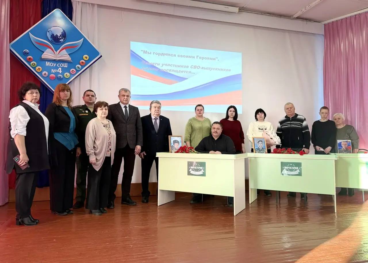 В школе №4 прошло торжественное открытие Парт героев, посвящённое памяти выпускников — Павла Зайцева, Алексея Панасенко и Павла Коруно, которые погибли, защищая Родину в ходе специальной военной операции.