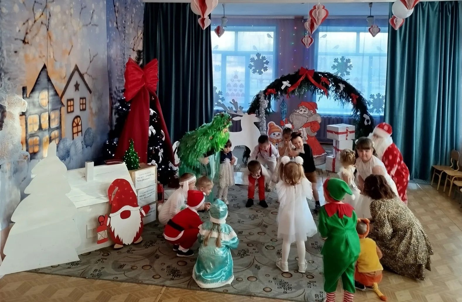 Ребята с нетерпением ждали его: разучивали стихи, песни, танцы, хороводы. И вот настал день. В нарядно украшенном зале детки встретились со сказочными героями и, конечно же, с Дедом Морозом. Пели с ними песни, играли и танцевали. И в награду от Дедушки Мороза все получили новогодние подарки.