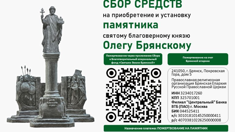 Памятник князю Олегу, основателю Петро-Павловского монастыря, станет духовной опорой для жителей региона. Брянская епархия уже начала сбор средств на его установку.