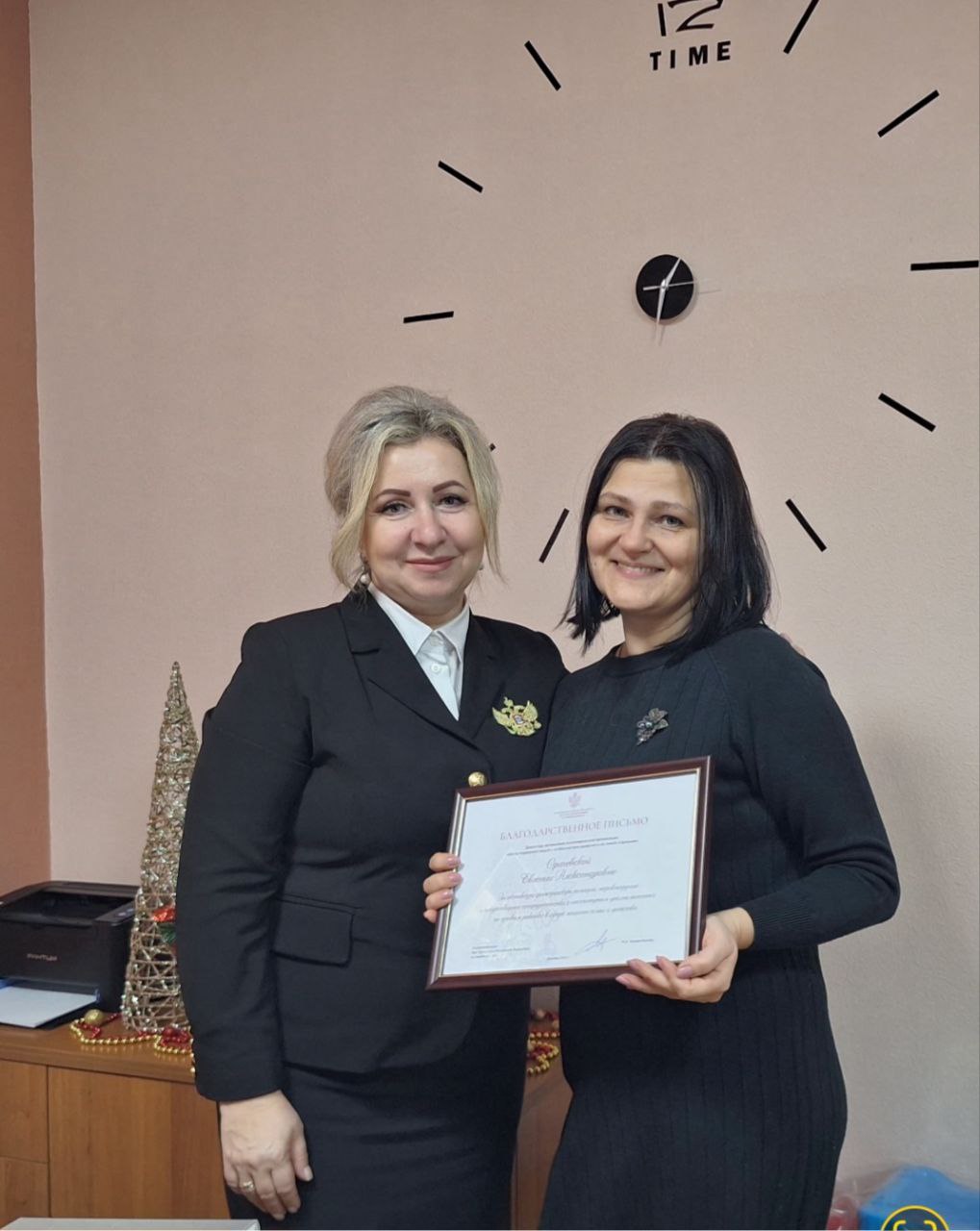 С удовольствием выполнила поручение Уполномоченного при Президенте РФ по правам ребенка Марии Львовой-Беловой и вручила Благодарственные письма двум руководителям некоммерческих организаций – Евгении Орачевской и Оксане Инашевской.