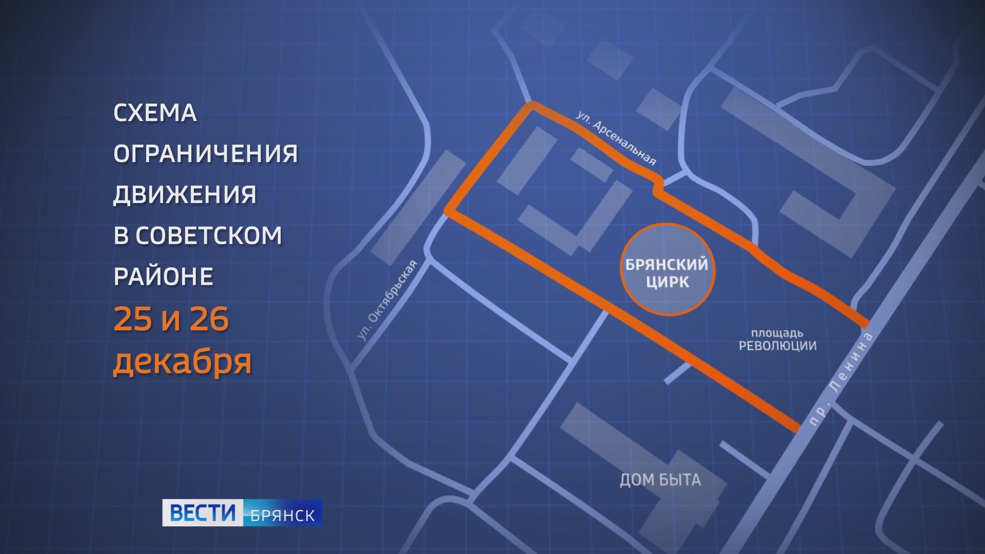Вечером 25 декабря ограничат движение и парковку машин у Брянского государственного цирка