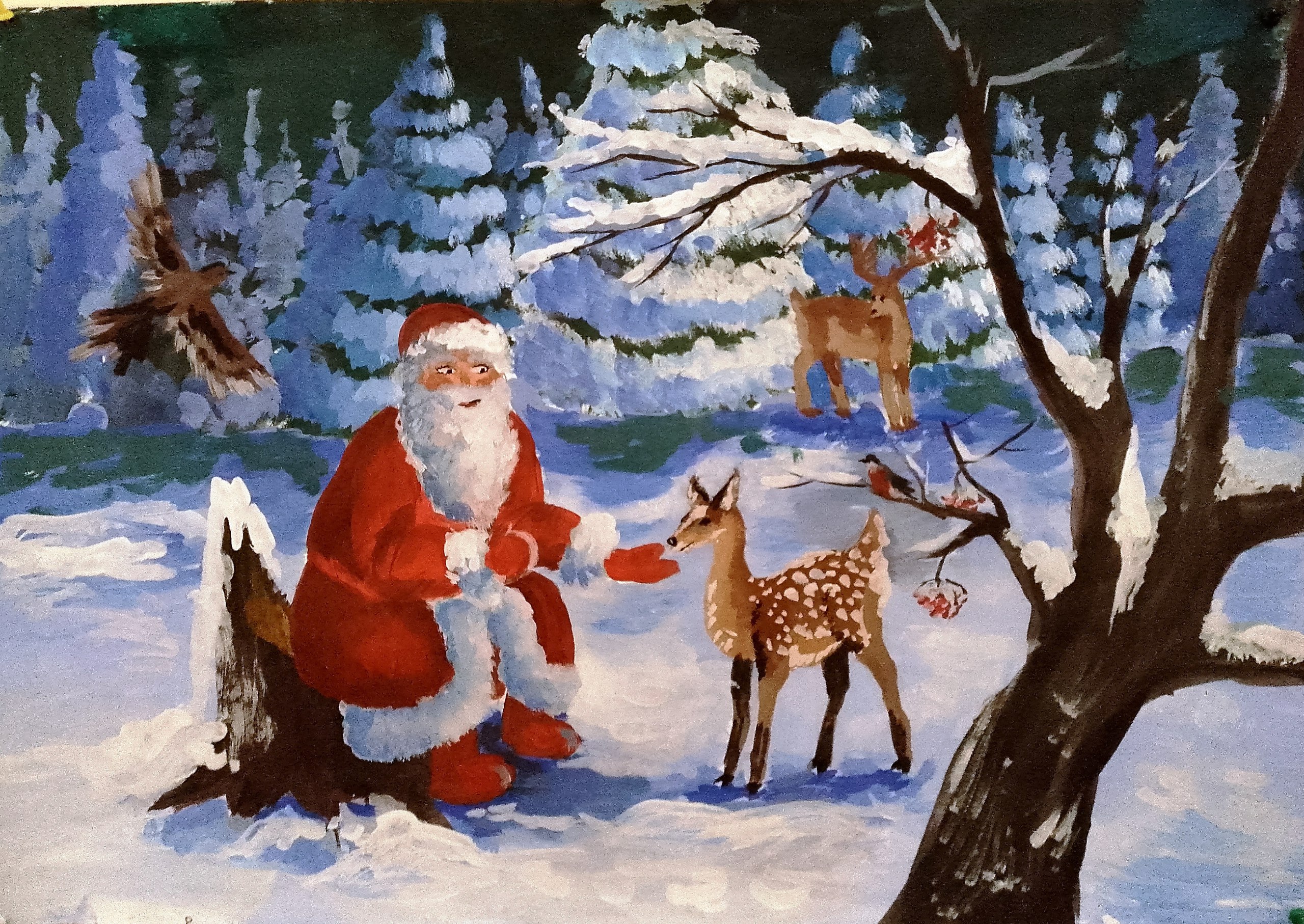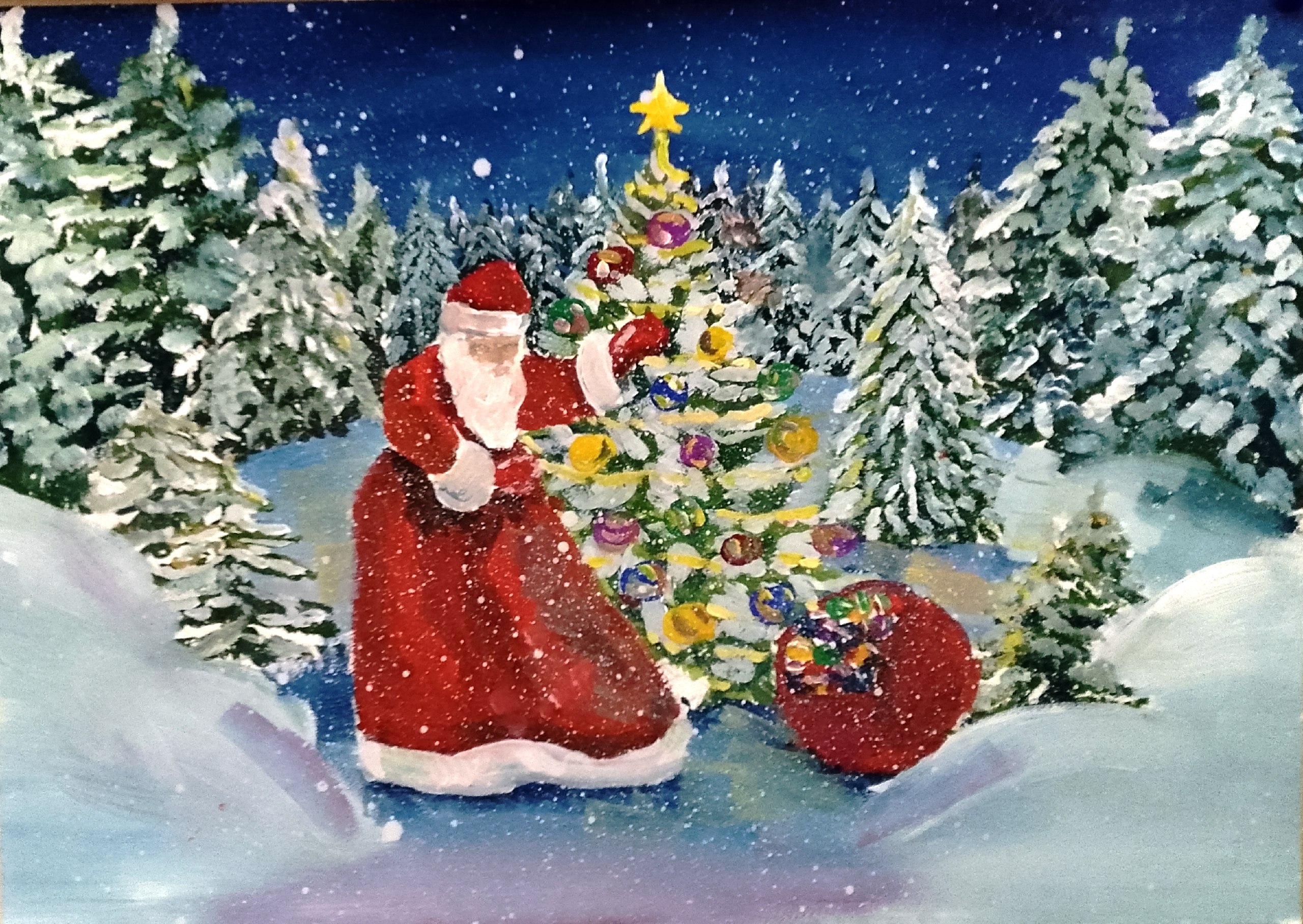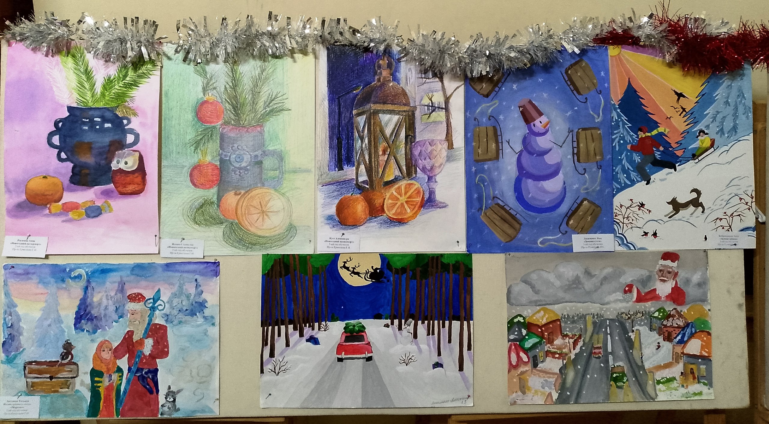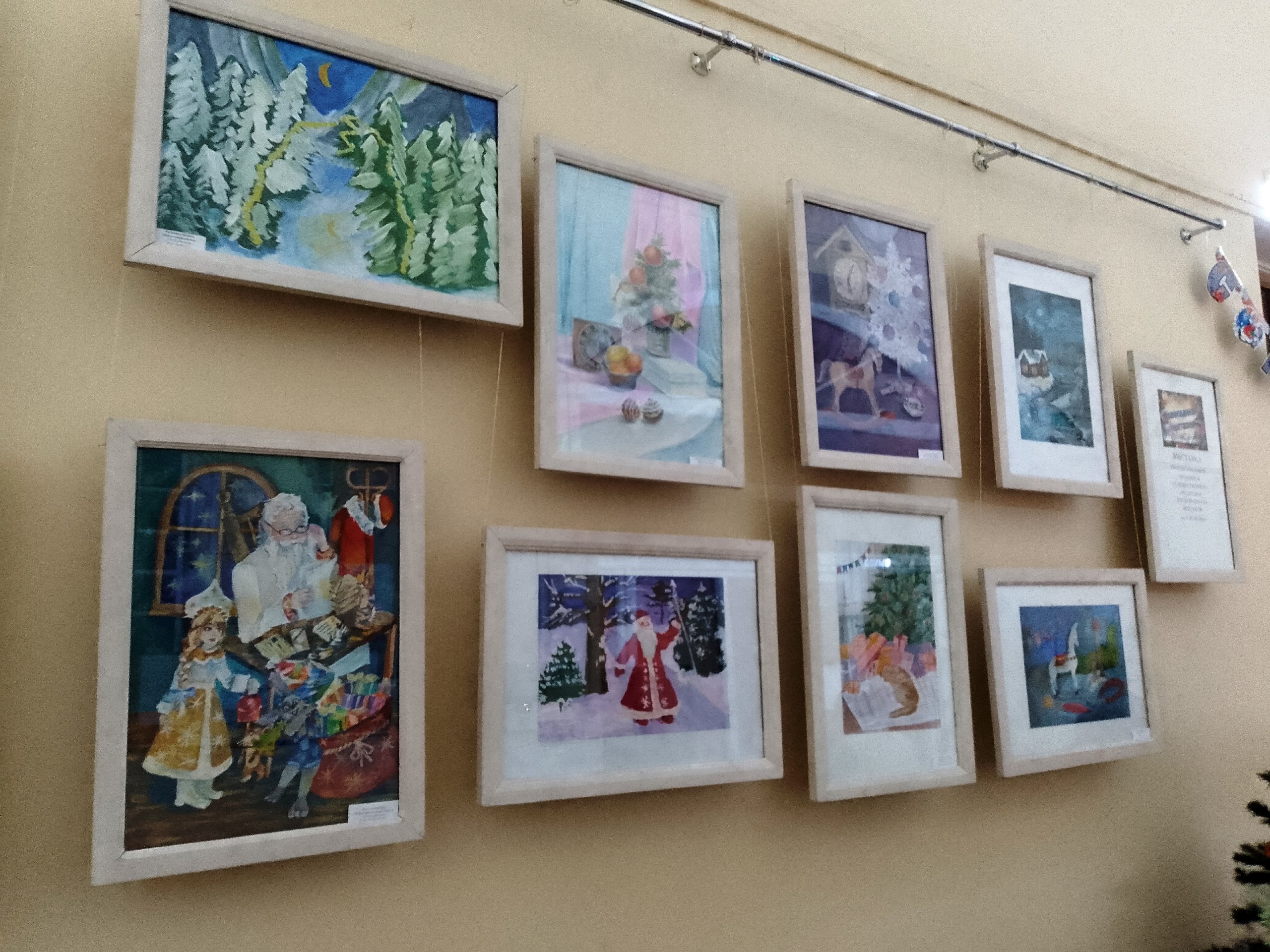 Юные художники использовали разнообразные техники и материалы. На выставке представлены самые разнообразные сюжеты: сияющие новогодние ёлки, добрые Деды Морозы и Снегурочки, веселые снеговики, уютные зимние пейзажи с заснеженными домами, лесные животные, готовящиеся к празднику, и, конечно, яркие символы наступающего года. Каждая работа – это маленькая история, рассказанная детским воображением.