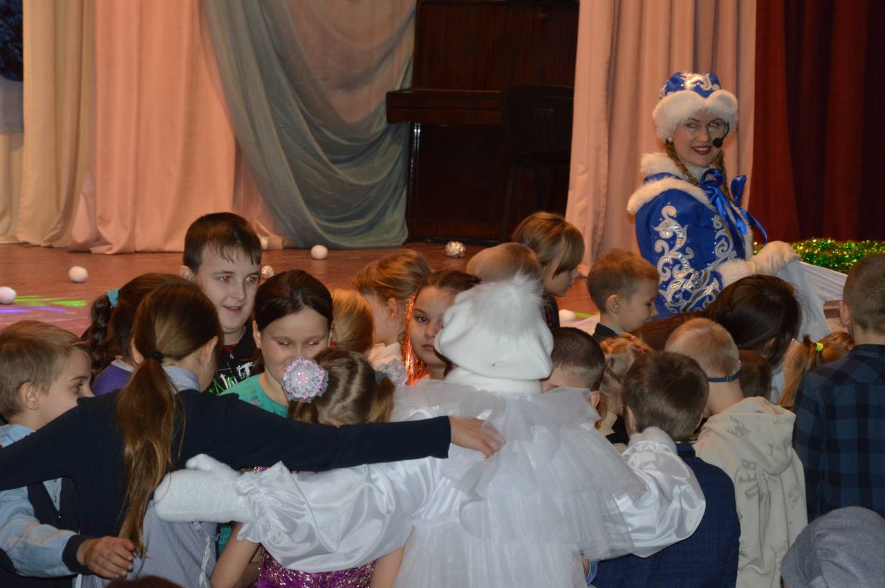 Сказочные персонажи увлекали детей интересными играми, весёлыми танцами, создавая атмосферу настоящего волшебства. Кульминацией праздника стало появление всеми любимых Деда Мороза и Снегурочки, которые принесли ещё больше радости и смеха. Восторг и неподдельная радость читались в глазах каждого ребёнка.