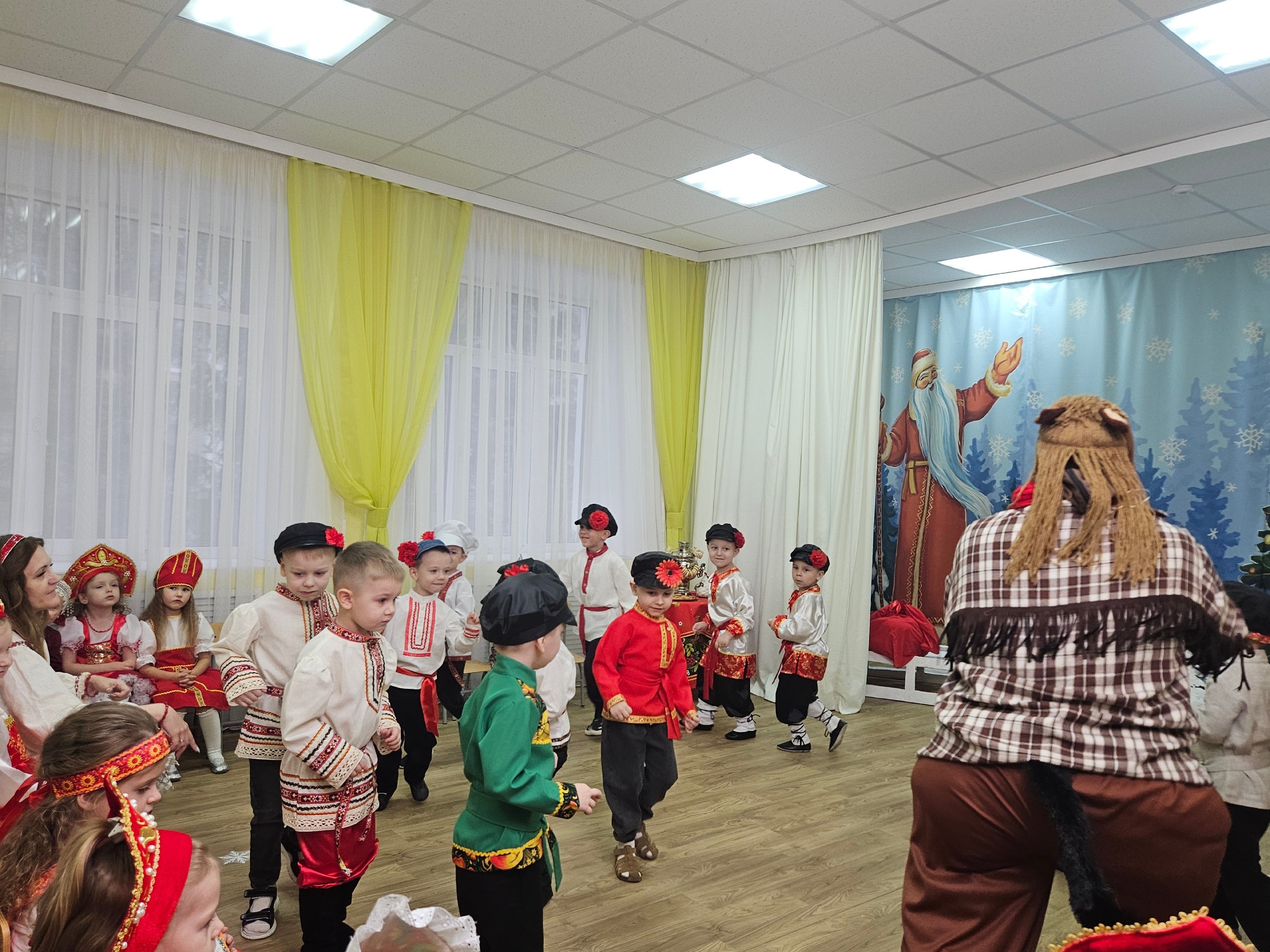 В нарядно украшенном зале сияла огнями озорная ёлочка. И праздники начинались не просто с хороводов, а с веселых и задорных песен, которые дети учили специально для этого дня. Их голоса звучали громко и дружно!