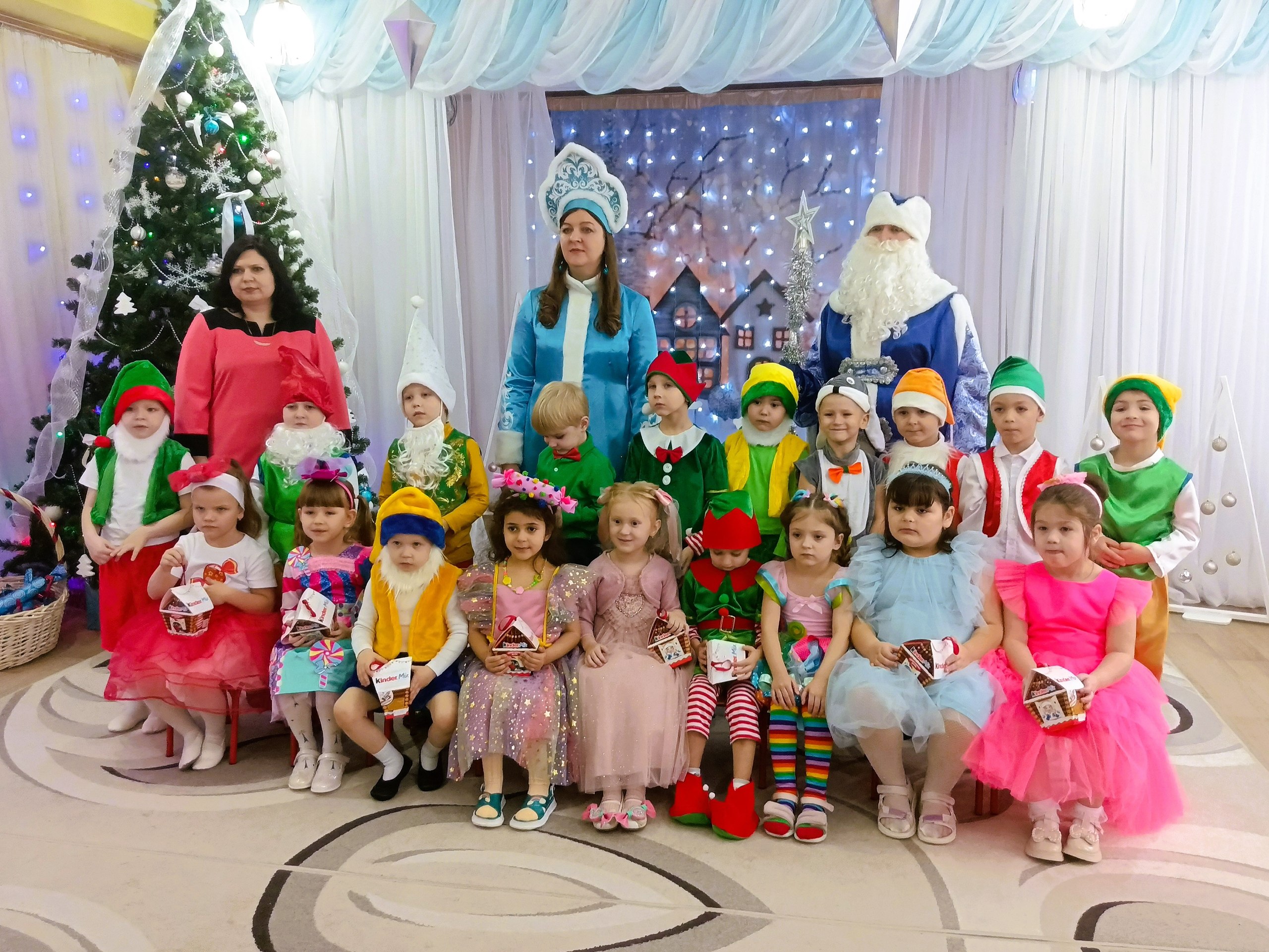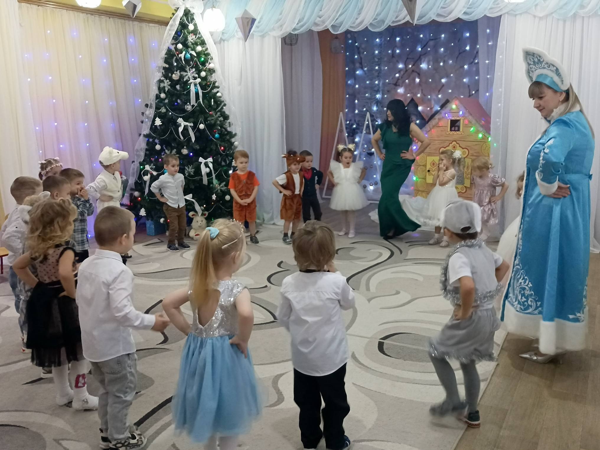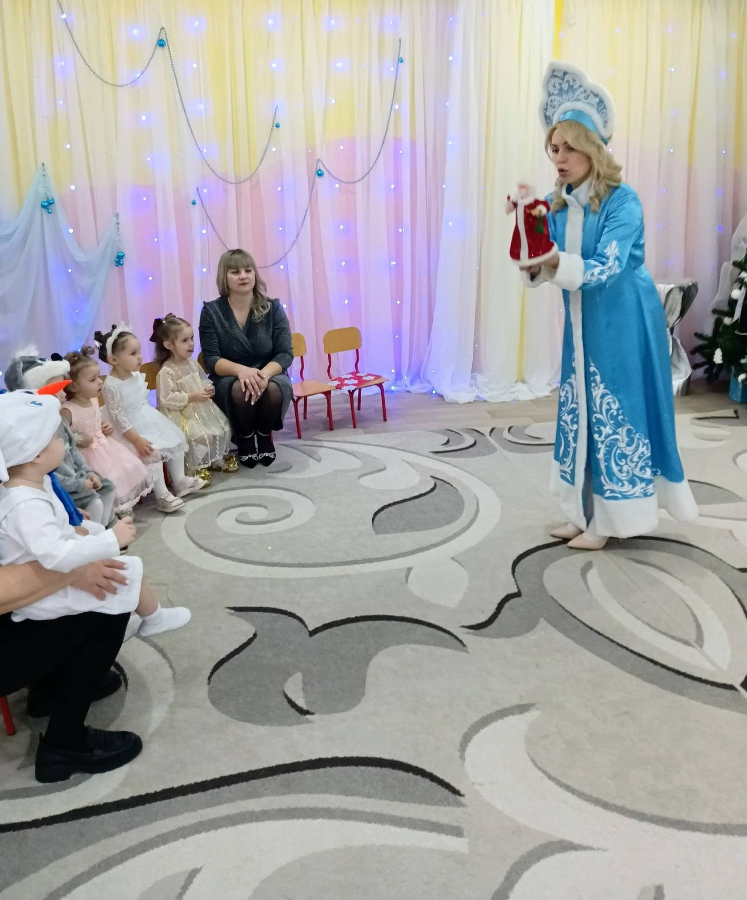 С 18 по 25 декабря 2025 г. в МБДОУ-д/с №27 «Чебурашка» во всех возрастных группах прошли новогодние утренники. Младшие дошкольники веселились у нарядной ёлочки с добрым Дедушкой Морозом, красавицей Снегурочкой, Зайчонком, озорной Лисичкой и Медведем. Дети средней группы встретились с Гномом и лесной Кикиморой. А ребята старших групп побывали на сказке, где выручали Кая из ледяного замка Снежной Королевы.