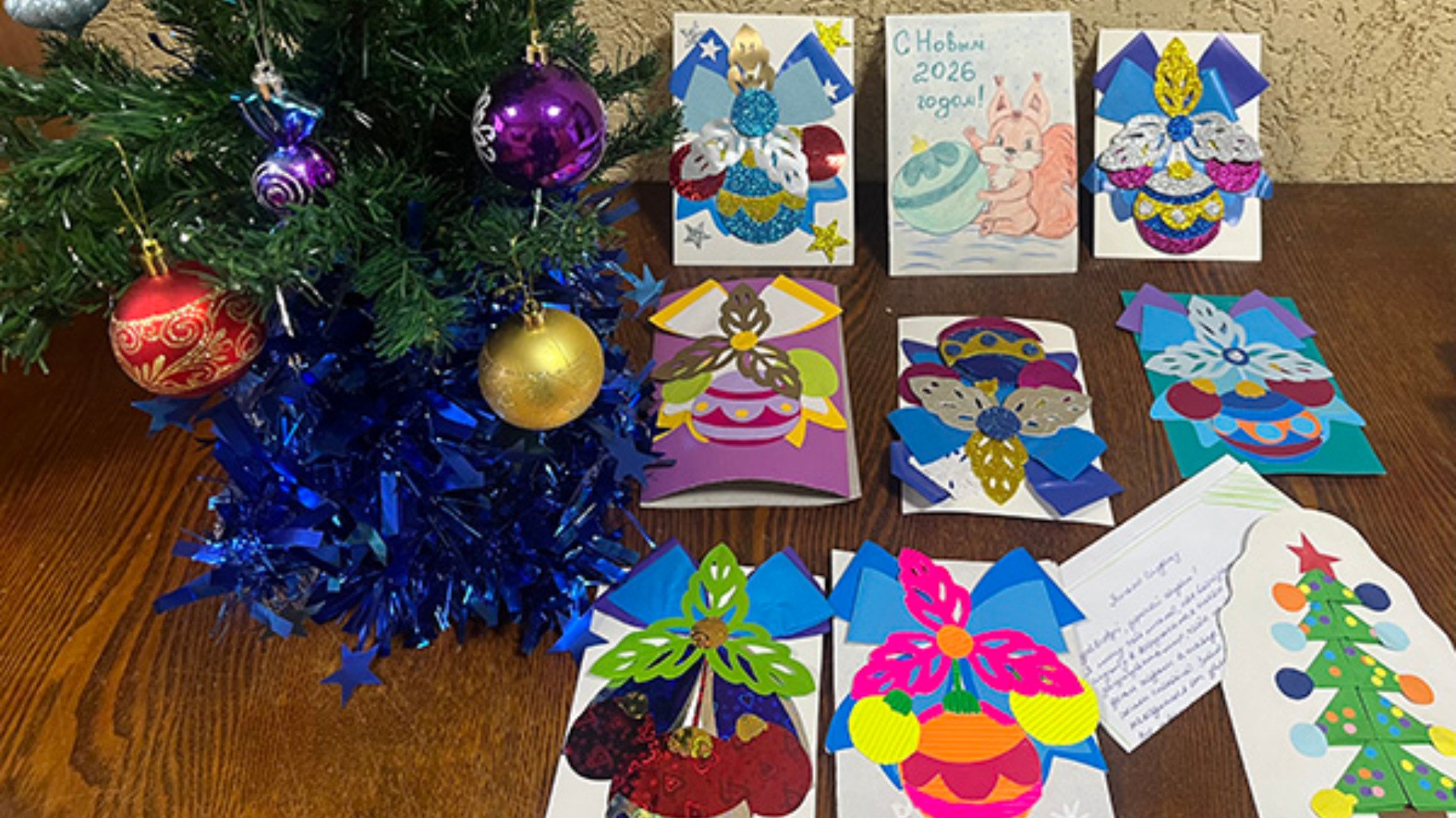 Дети сотрудников брянской исправительной колонии подготовили новогодние открытки для участников СВО