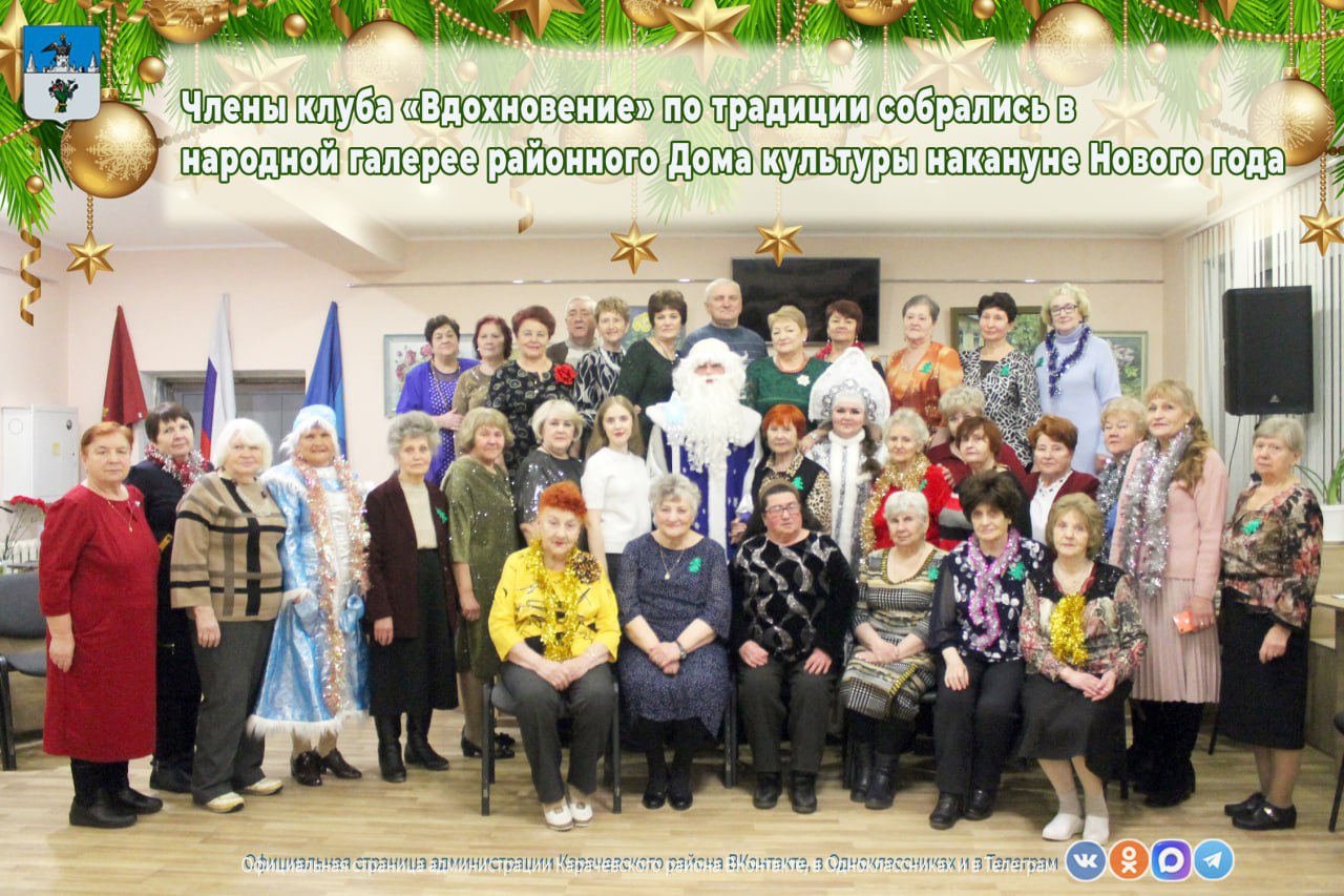 Члены клуба «Вдохновение» по традиции собрались в народной галерее районного Дома культуры накануне Нового года. В клубе 46 человек, а его костяк составляют ветераны-педагоги, обладающие немалым стажем и заслуженным авторитетом.