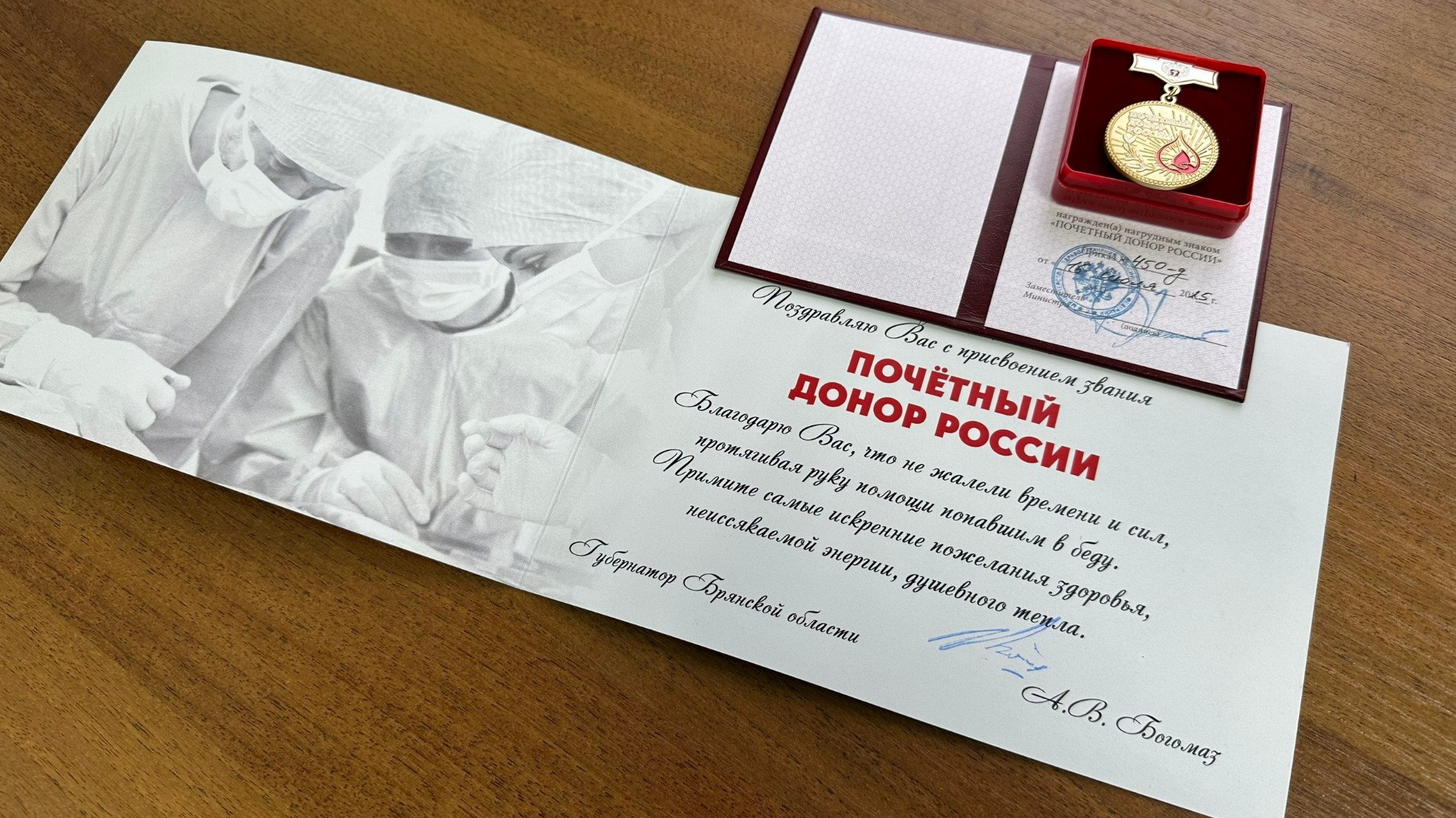 Звание "Почетный донор России" присвоили 25 жителям Брянской области