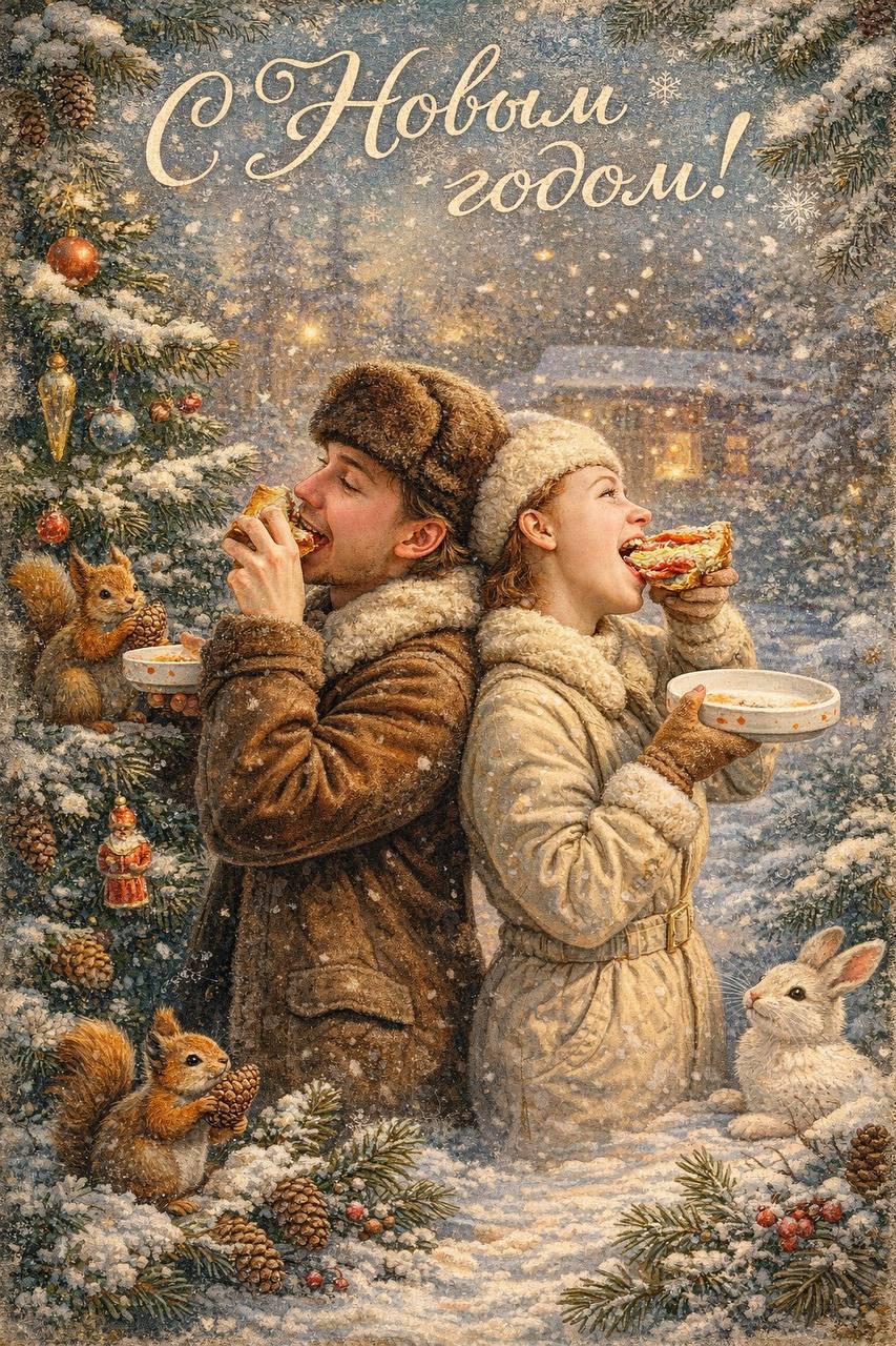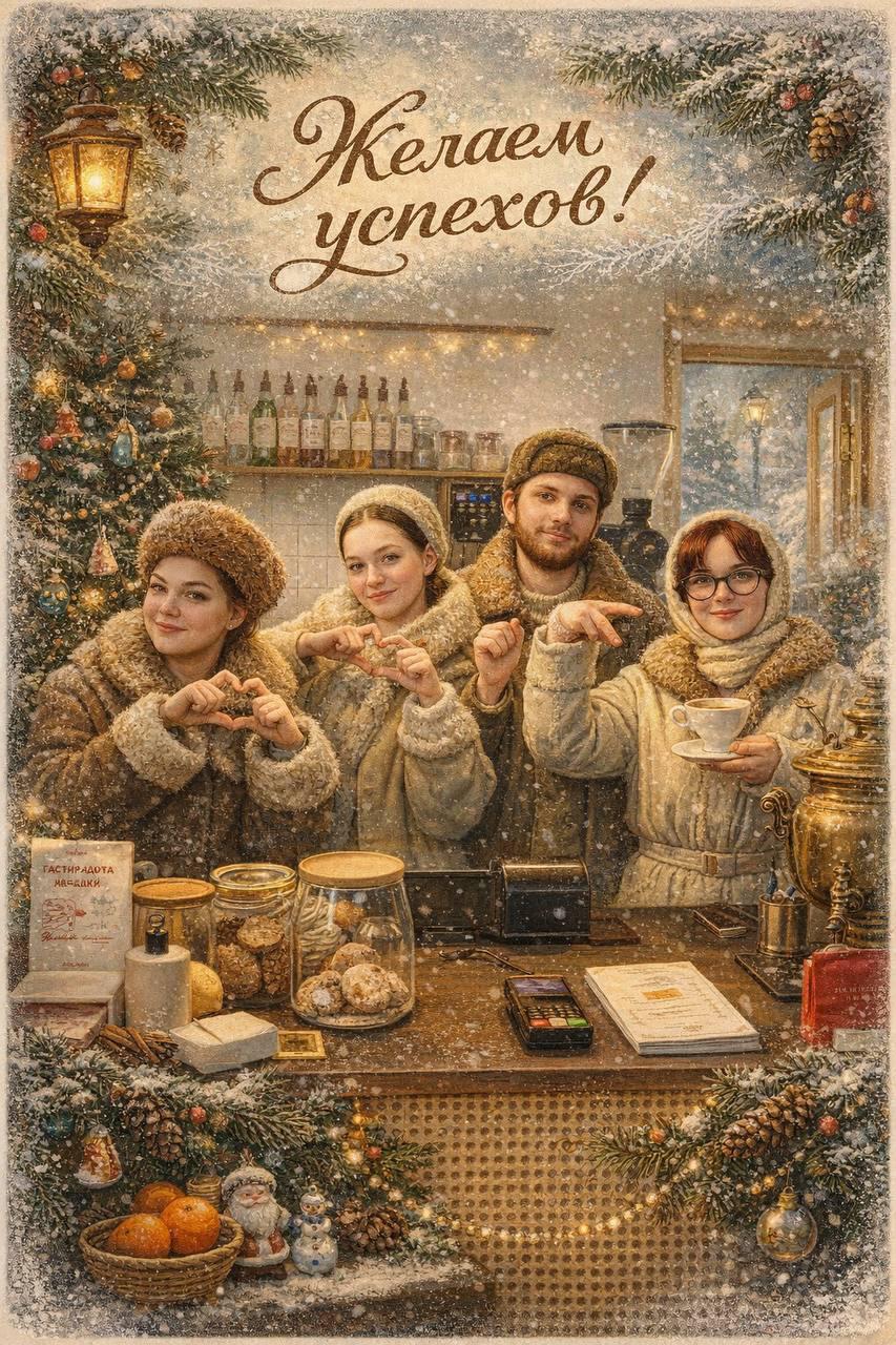 Ребята из большого семейства «Щебетуна» (если кто-то вдруг не был в их заведениях, то обязательно советуем посетить) сделали отличные новогодние открытки с собой в главных ролях.