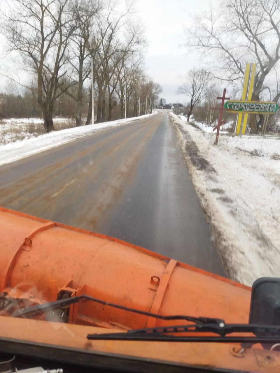В эти часы подрядные организации Управления автомобильных дорог Брянской области продолжают очистку и обработку региональных и межмуниципальных автодорог от снега и наледи. Работа ведется во всех районах Брянской области.