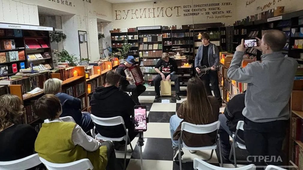 Новогодний квартирник в арт-пространстве «Брянсккнига» на творческой ноте завершил год уходящий. Теплую атмосферу праздника, дружеское общение и море позитивных эмоций подарили сегодня, 27 декабря, «Кирилл Гончаров band». Их искренняя музыка в стильном, проникновенном исполнении давно знакома брянским меломанам.