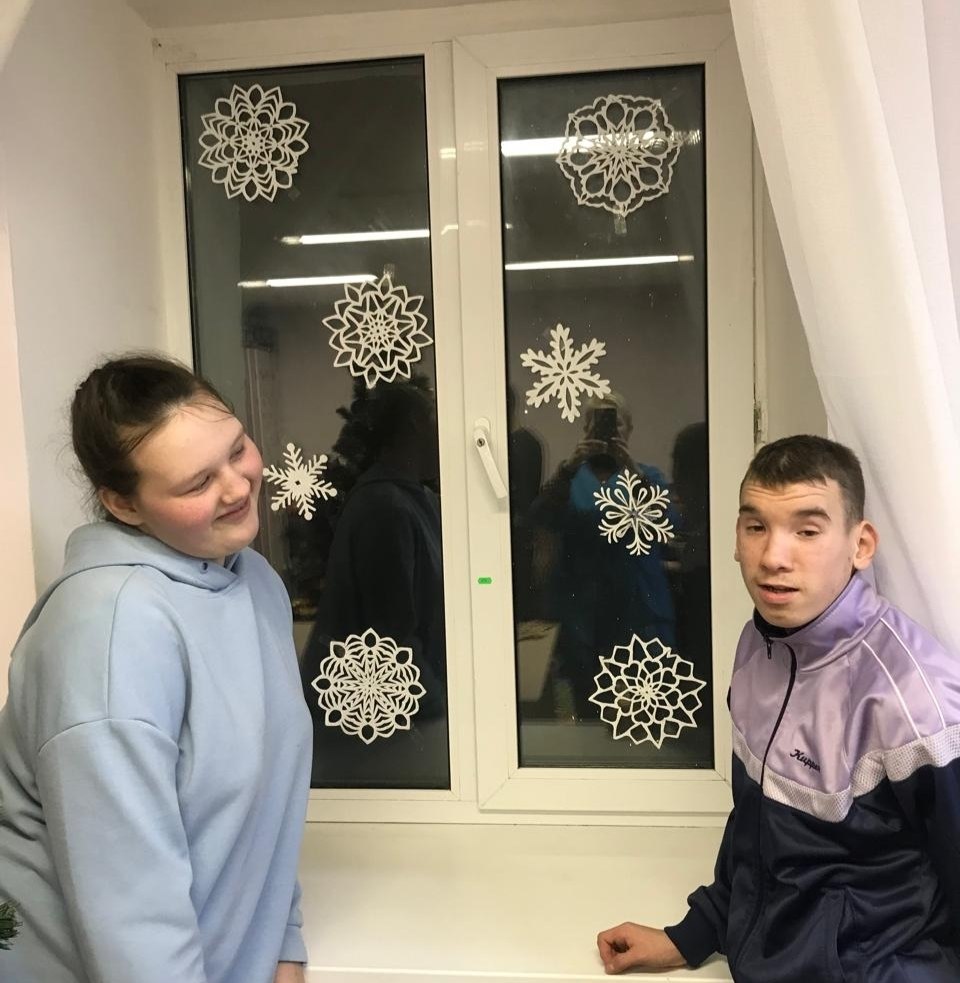 В ГБСУСОН "Дубровский детский дом-интернат для умственно отсталых детей" есть традиция - украшать окна под Новый год.