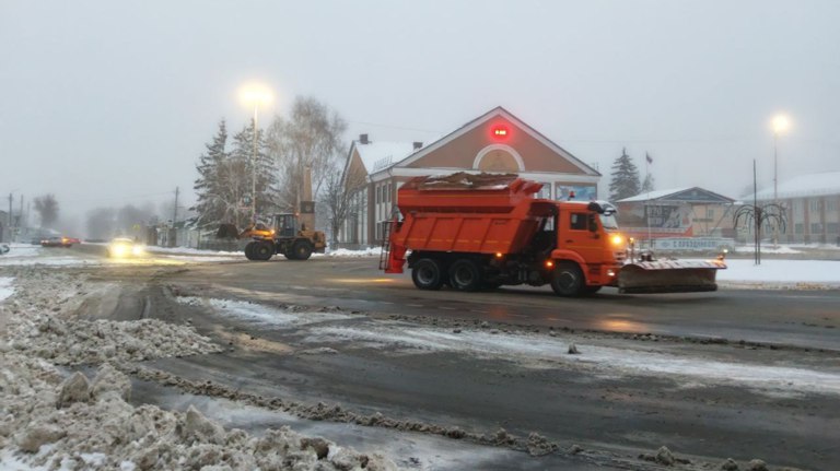 После ночного снегопада в Погарском районе на уборку вышла вся спецтехника