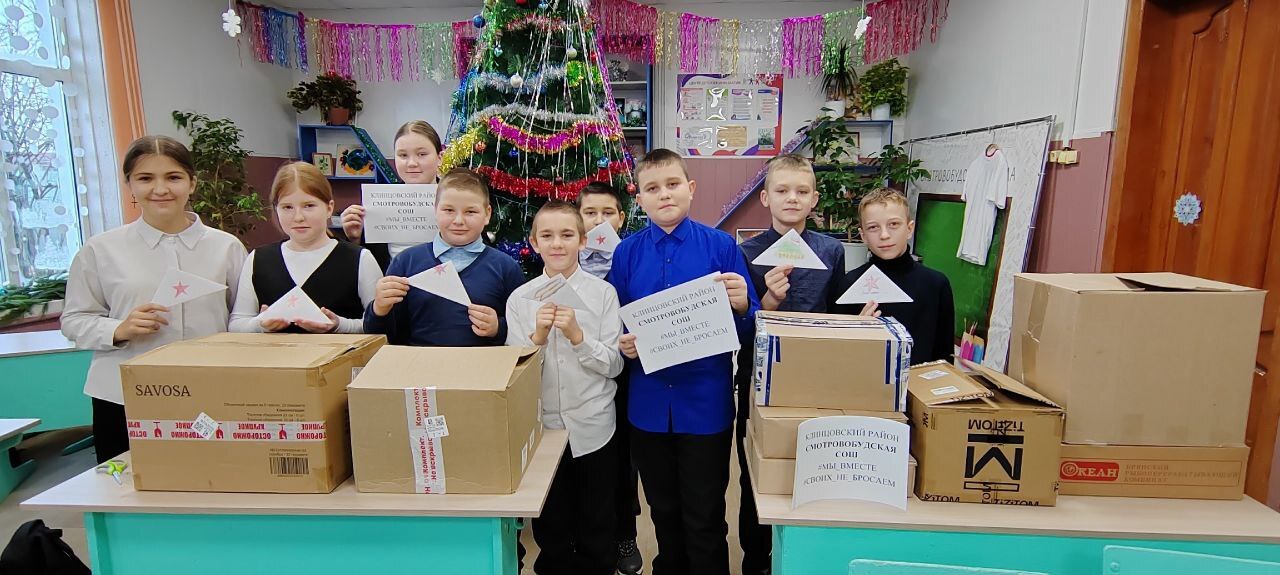 Ребята всех школ района поучаствовали в акциях и вместе с педагогами, родителями подготовили посылки (необходимые вещи, свечи), письма и открытки с поздравлениями на передовую.