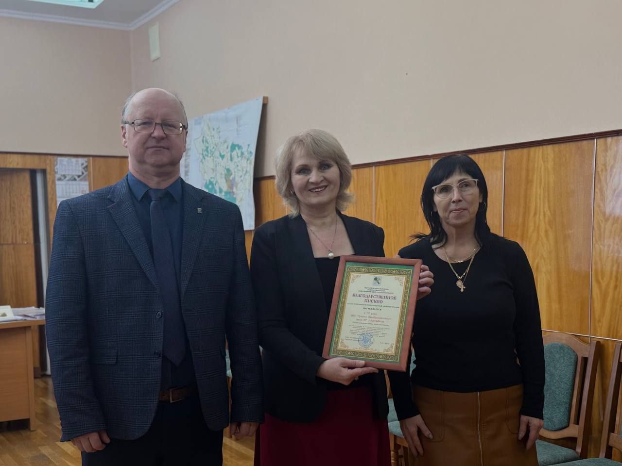 Накануне новогодних праздников глава администрации Александр Викторович Юрлов вручил благодарственное письмо учащимся и классному руководителю 9 "Г" класса средней общеобразовательной школы №9 г. Новозыбкова