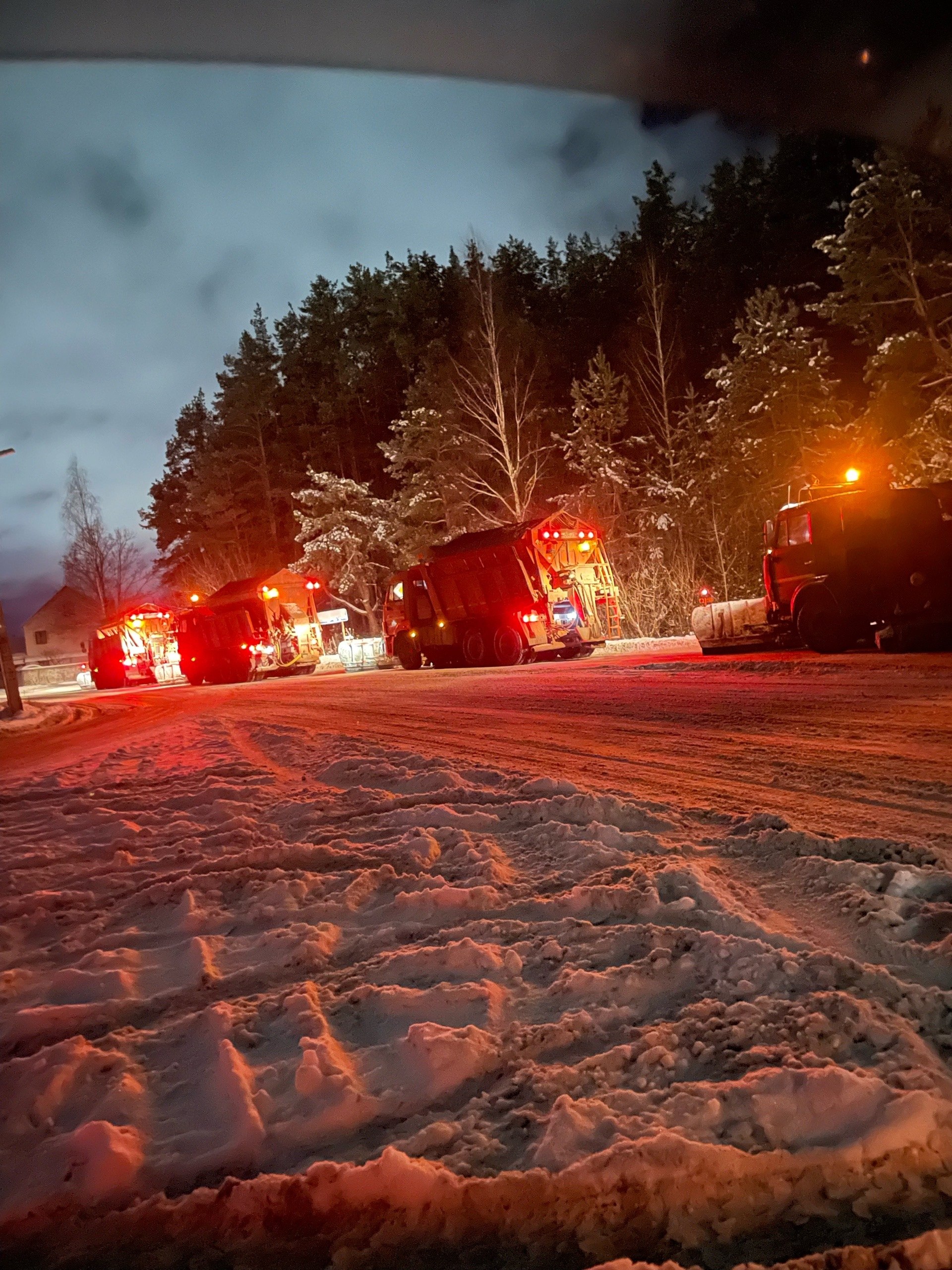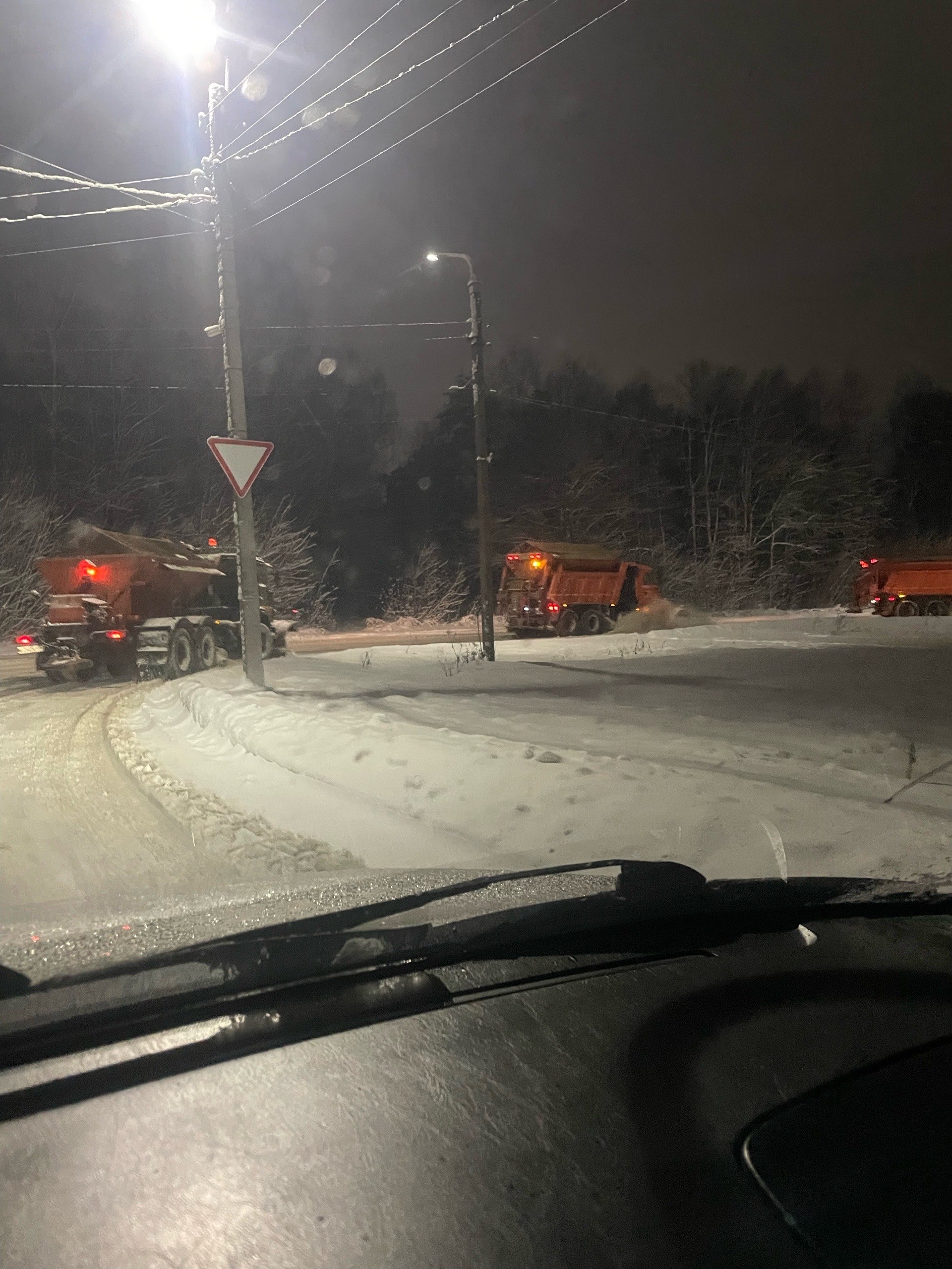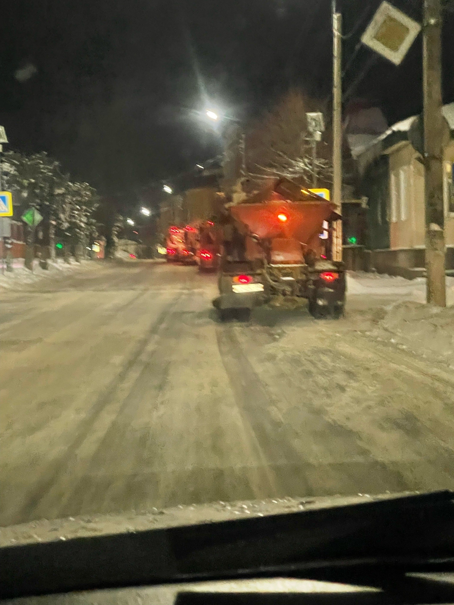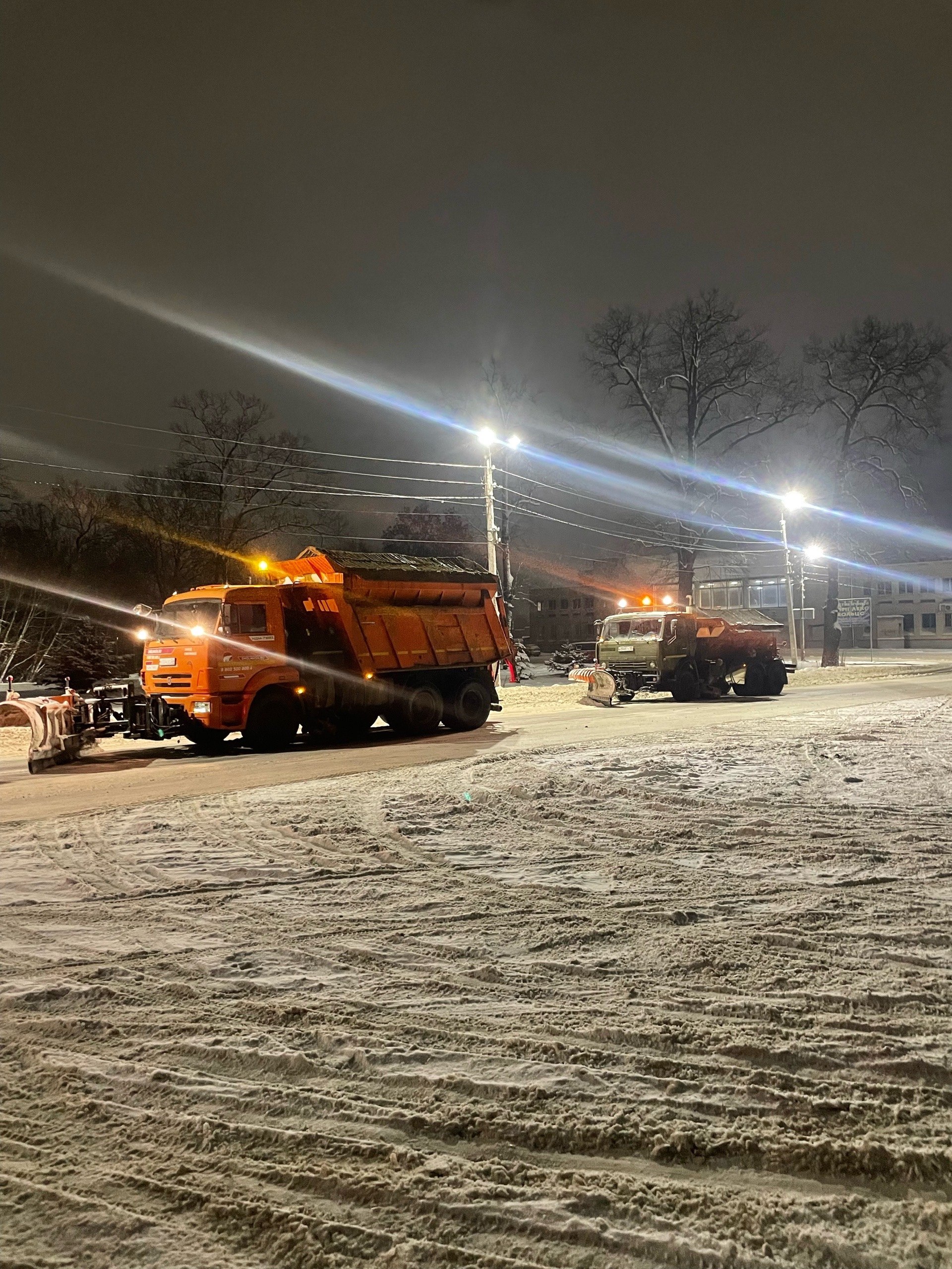 29.12. ночью сотрудники МБУ «Благоустройство» и 4 КДМ расчищали дороги от снега. Также выполнили подсыпку дорог пескосоляной смесью.