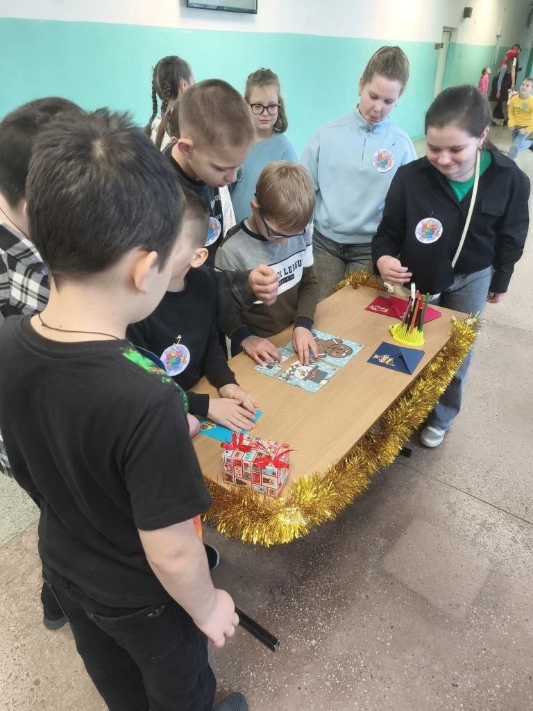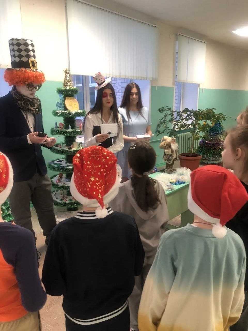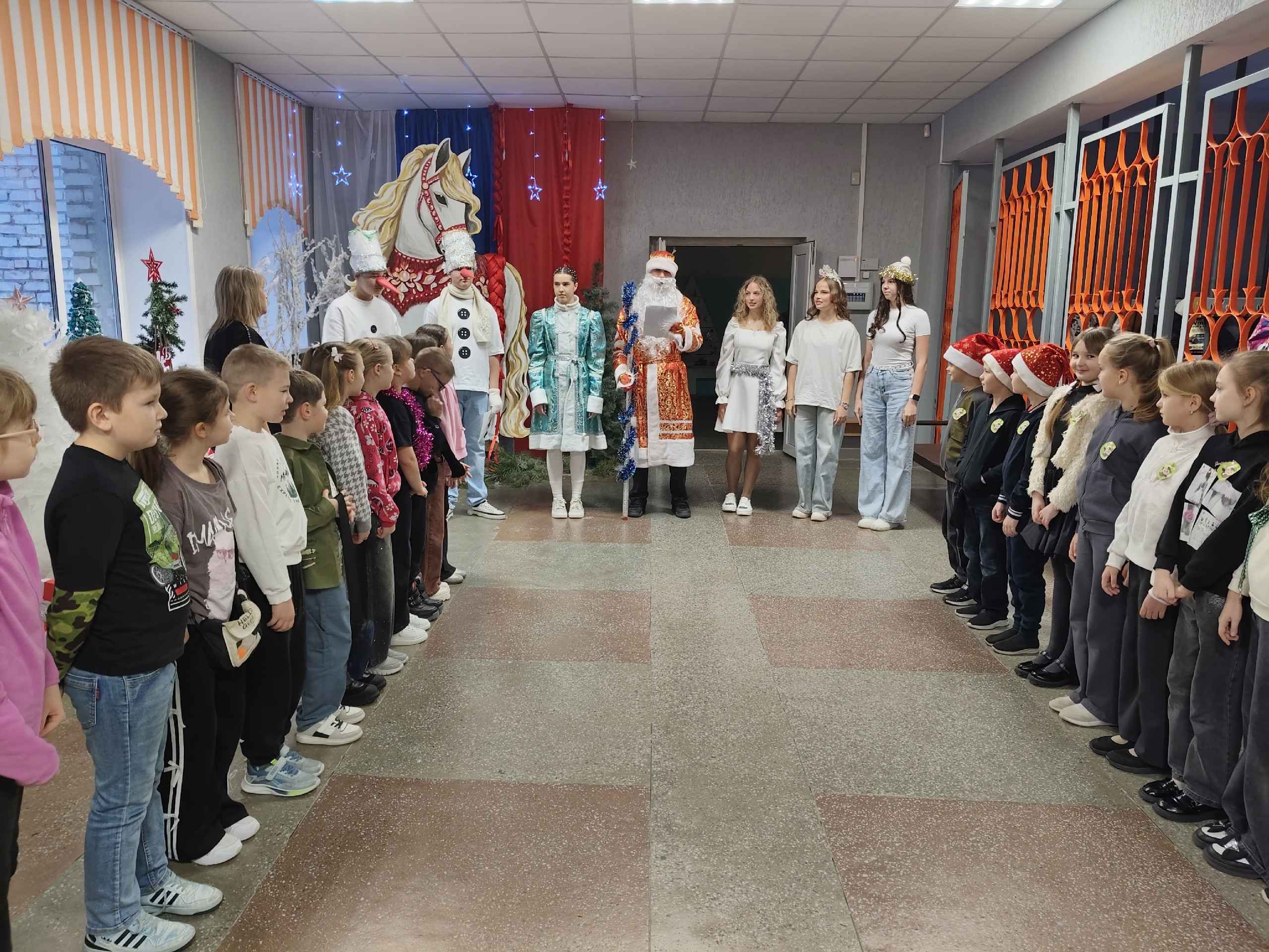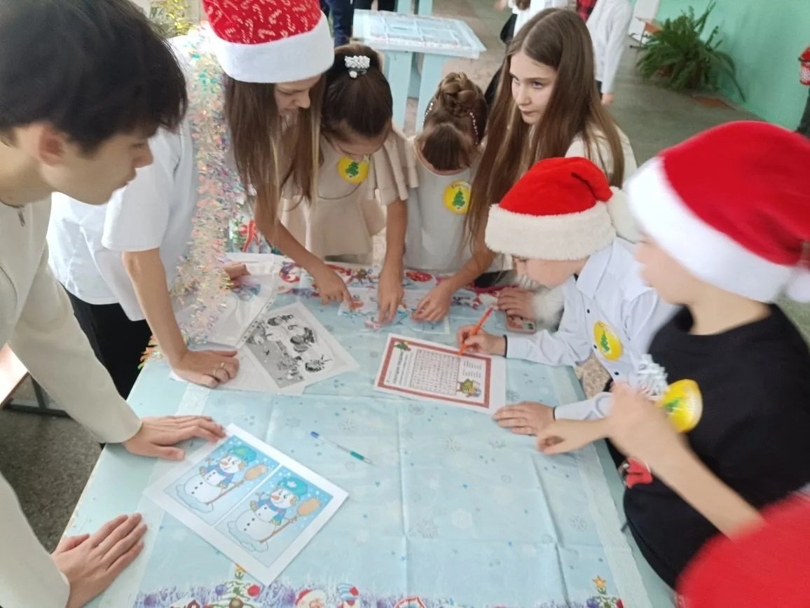 Старшеклассники подготовили волшебные новогодние квесты для наших маленьких учеников из начальной школы. Встречал ребят Дед Мороз со своей снегурочкой, а также помощники — забавные снеговики и снежинки. Ярко украшенные станции напоминали настоящие сказочные уголки, где юных участников ожидали сказочные герои и увлекательные задания.