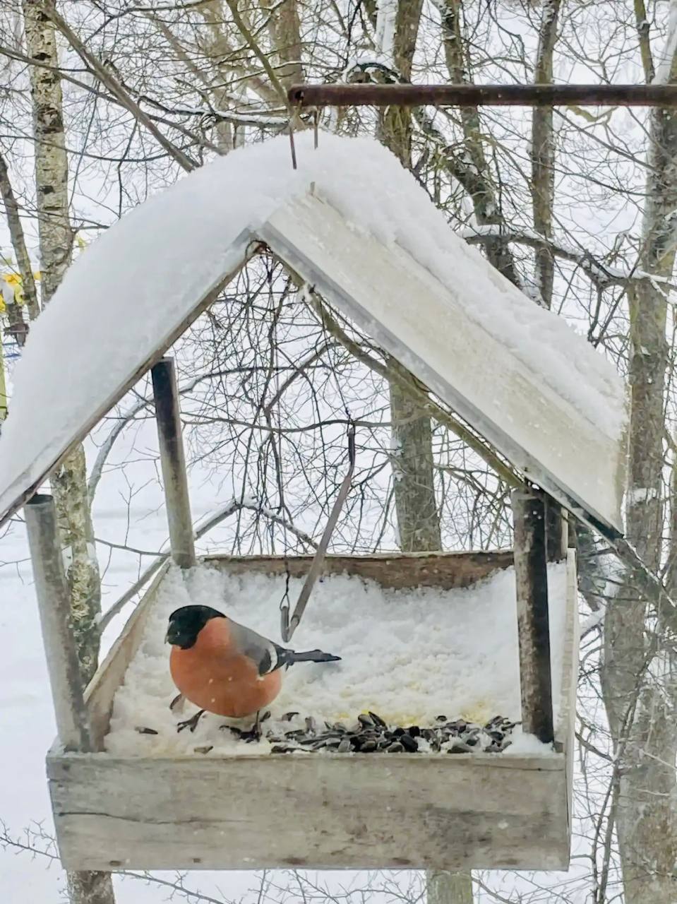 Воробьи, синицы и снегири прилетают сюда, чтобы подкрепиться. Их весёлое щебетание и оживлённое порхание создают неповторимую атмосферу.
