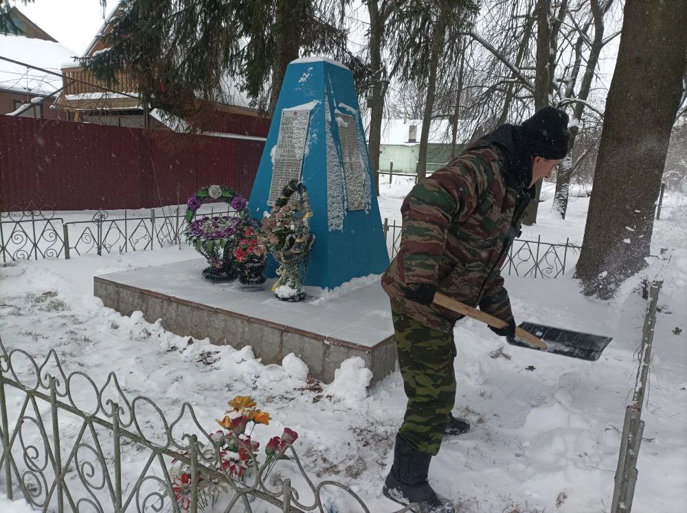 В зимний период памятники часто оказываются засыпаны снегом, что затрудняет доступ к ним и уменьшает их видимость. Именно поэтому участники акции Хмелевского сельского поселения, вооружившись лопатами и щетками, с энтузиазмом принялись за очистку памятников от снега.