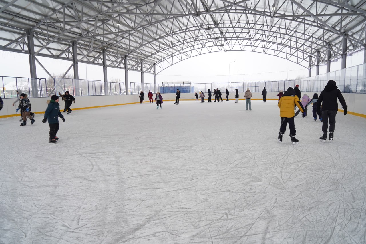 ледовый каток, спортивный зал с универсальной спортплощадкой, тренажерами. Строится физкультурно-оздоровительный комплекс с бассейном.