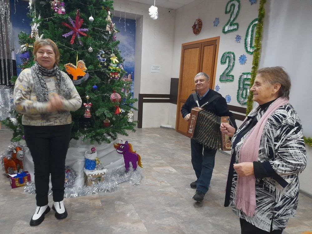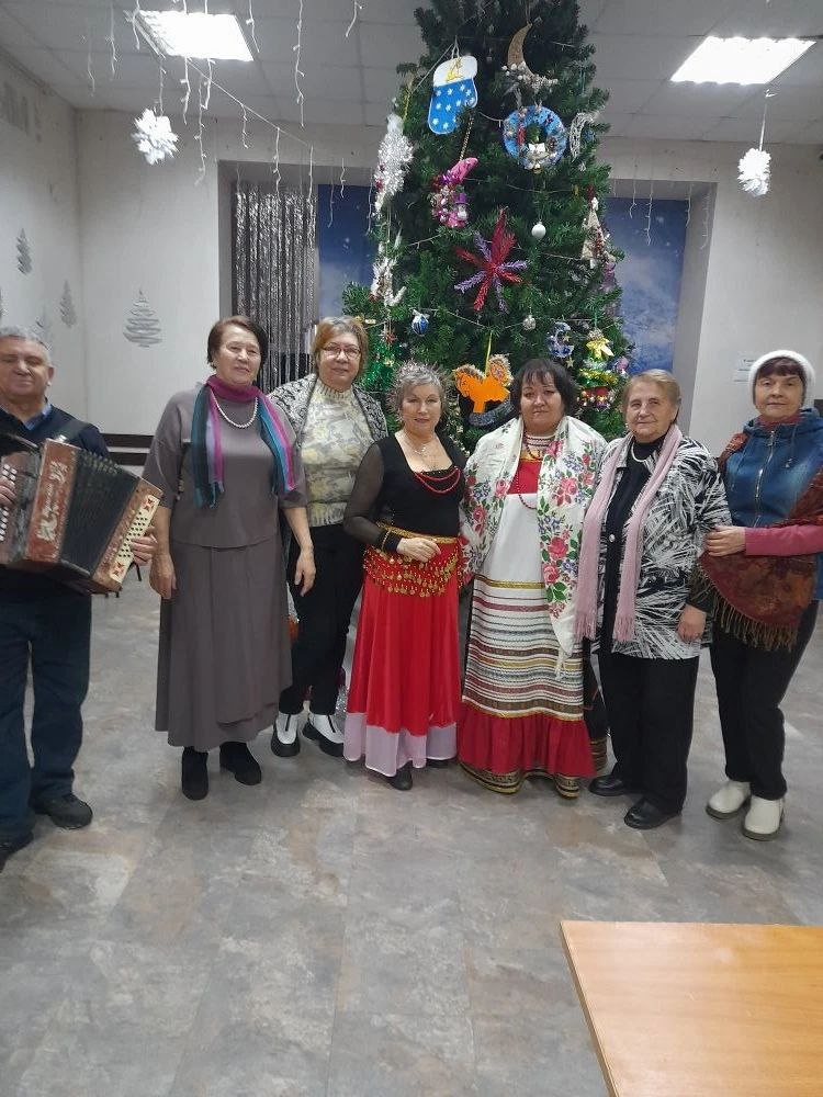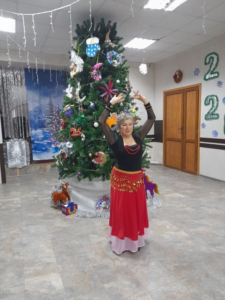 Участники посиделок вспоминали, как праздновали Новый Год и Рождество Христово в их дестве, как отмечают сейчас, какие семейные традиции до сих пор сохранены. И какой же праздник без песен, частушек, танцев и хоровода вокруг новогодней ёлочки. Никто не удержался от пляски под русскую гармошку. Сюрприз ожидал всех, когда в зале появилась восточная красавица.