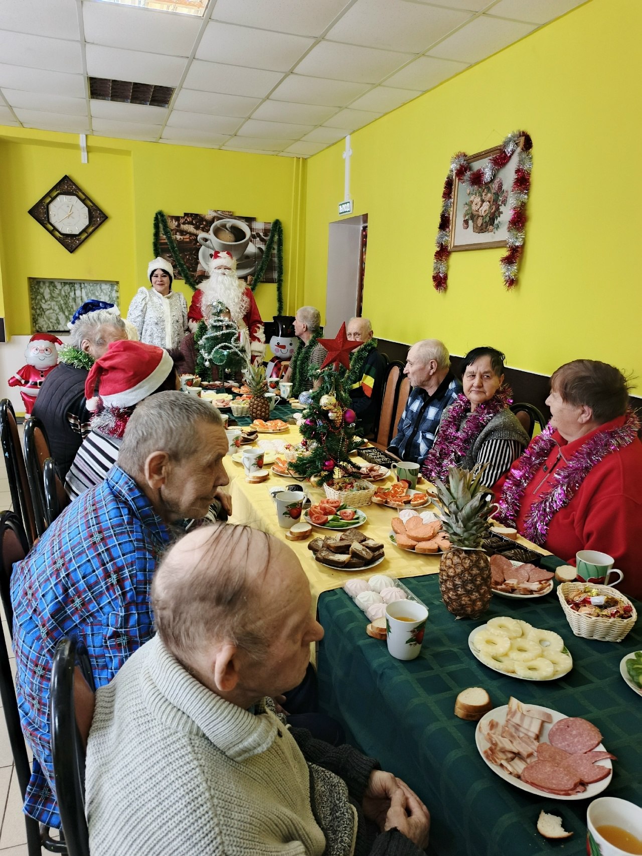 Эта акция направлена на помощь подопечным домов престарелых и одиноким пожилым людям. Вот и наш Погарский дом-интернат благодаря фонду устроил новогодний стол для своих проживающих. Поздравить получателей социальных услуг также пришли Дед Мороз и Снегурочка.