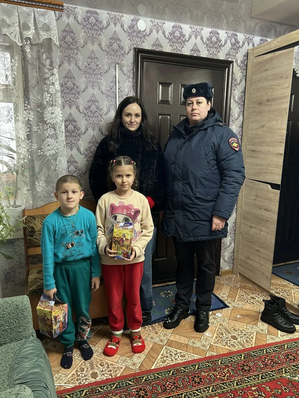 В канун новогодних праздников главный специалист сектора обеспечения деятельности КДН и ЗП, совместно с сотрудниками ОП «Выгоничский» поздравили детей с наступающим новым годом, вручили сладкие новогодние подарки.