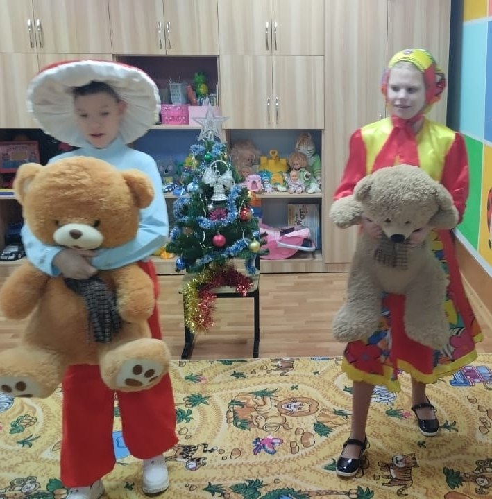 Под веселую музыку дети кружились как снежинки, изображали зайчиков и медвежат, играли на простых музыкальных инструментах.
