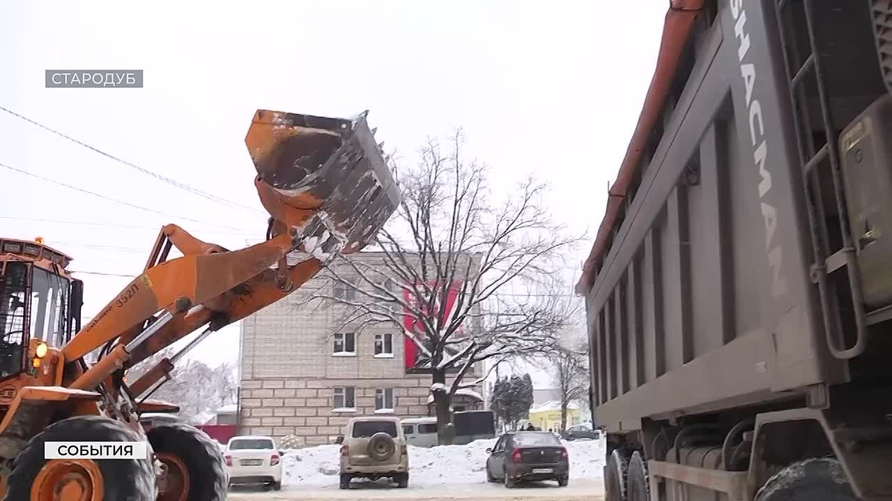 Наша съёмочная группа проехала вместе с жилищной инспекцией по городу. В Стародубе и близлежащих селах на уборку снега брошены все силы, в помощь коммунальщикам вышли погрузчики местных КФХ. Опытные водители полностью загружают машины.