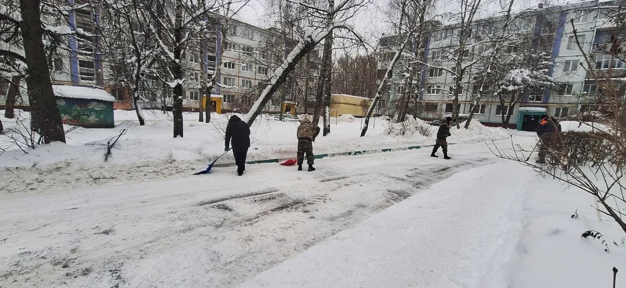 В Брянске продолжается уборка дорог от снега. На улицы выходит как спецтехника, так и рабочая сила. Сотрудники управляющих компаний вооружившись лопатами, особое внимание уделяют дворам и территориям у подъездов многоквартирных домов.