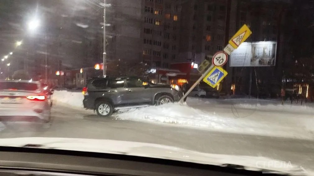 Внедорожник марки Toyota въехал в дорожный знак. Транспортное средство получило механические повреждения кузовной части. Возможно, причиной аварии стало то, что водитель не справился с управлением. На данный момент о пострадавших неизвестно. Официальной информации от Госавтоинспекции также пока не поступало.
