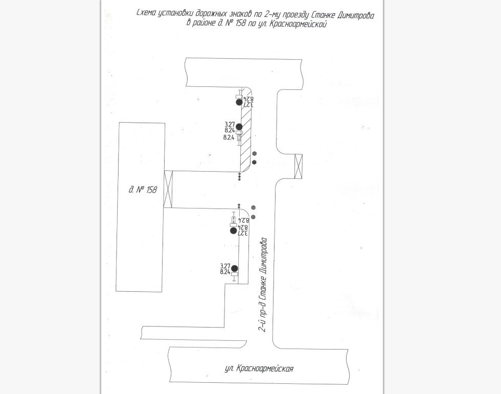 По 2-му проезду Станке Димитрова у дома 158 по улице Красноармейской будут установлены дорожные знаки. Они увеличивают зону действия существующих знаков, ограничивающую стоянку транспортных средств.