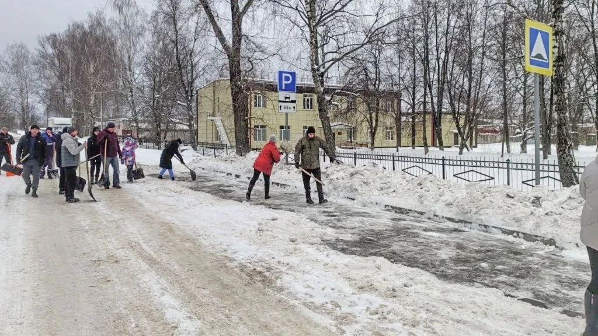 Брянск вышел с лопатами: родители и учителя расчистили школу от снега