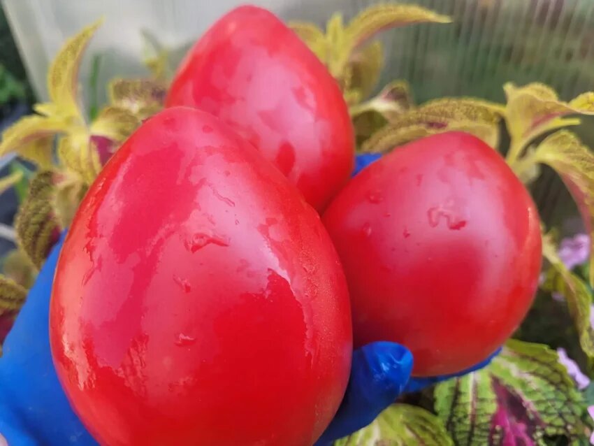 - Вкус и текстура: Плоды не только крупные, но и имеют насыщенный «томатный» вкус, что делает их идеальными для свежих салатов и переработки на сок.