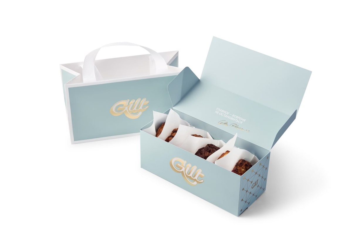 Не менее впечатляет и упаковка Gilt — она продумана до мелочей. Печенья размещаются в стильных коробках, рассчитанных на 6 или 12 штук, позволяя легко подарить их кому-то особому. Упаковка таким образом становится частью впечатления, а не просто способом транспортировки лакомства.