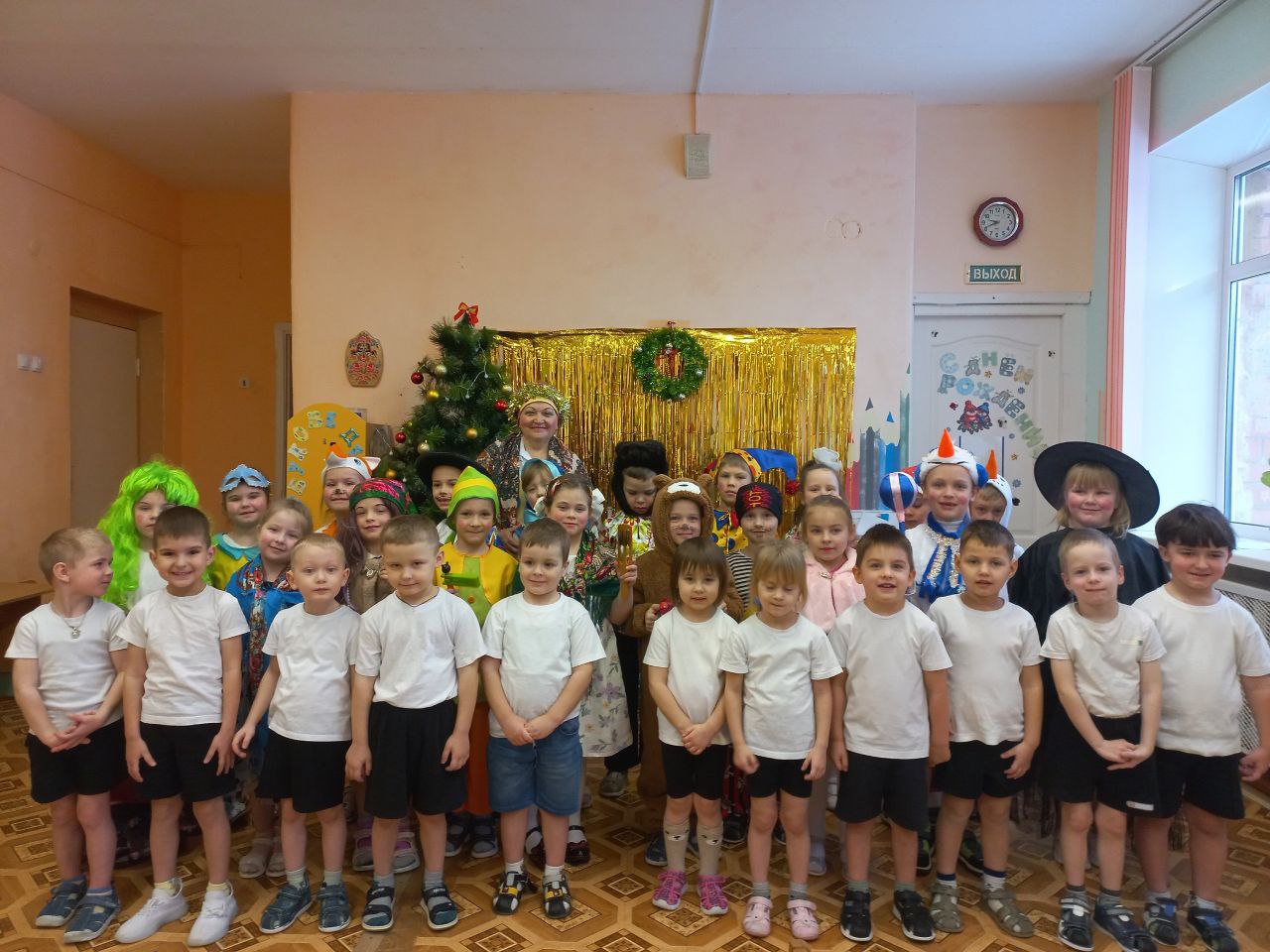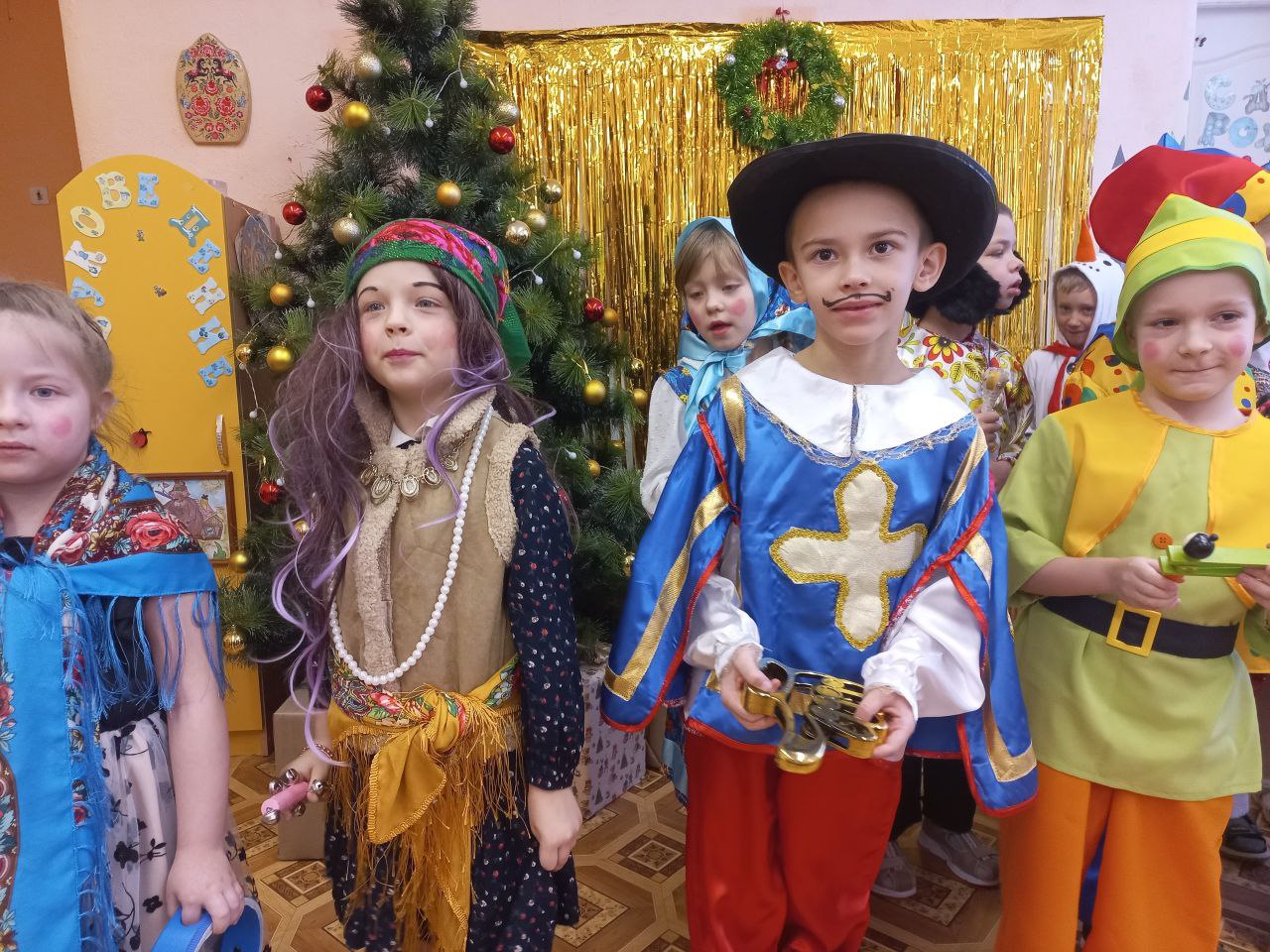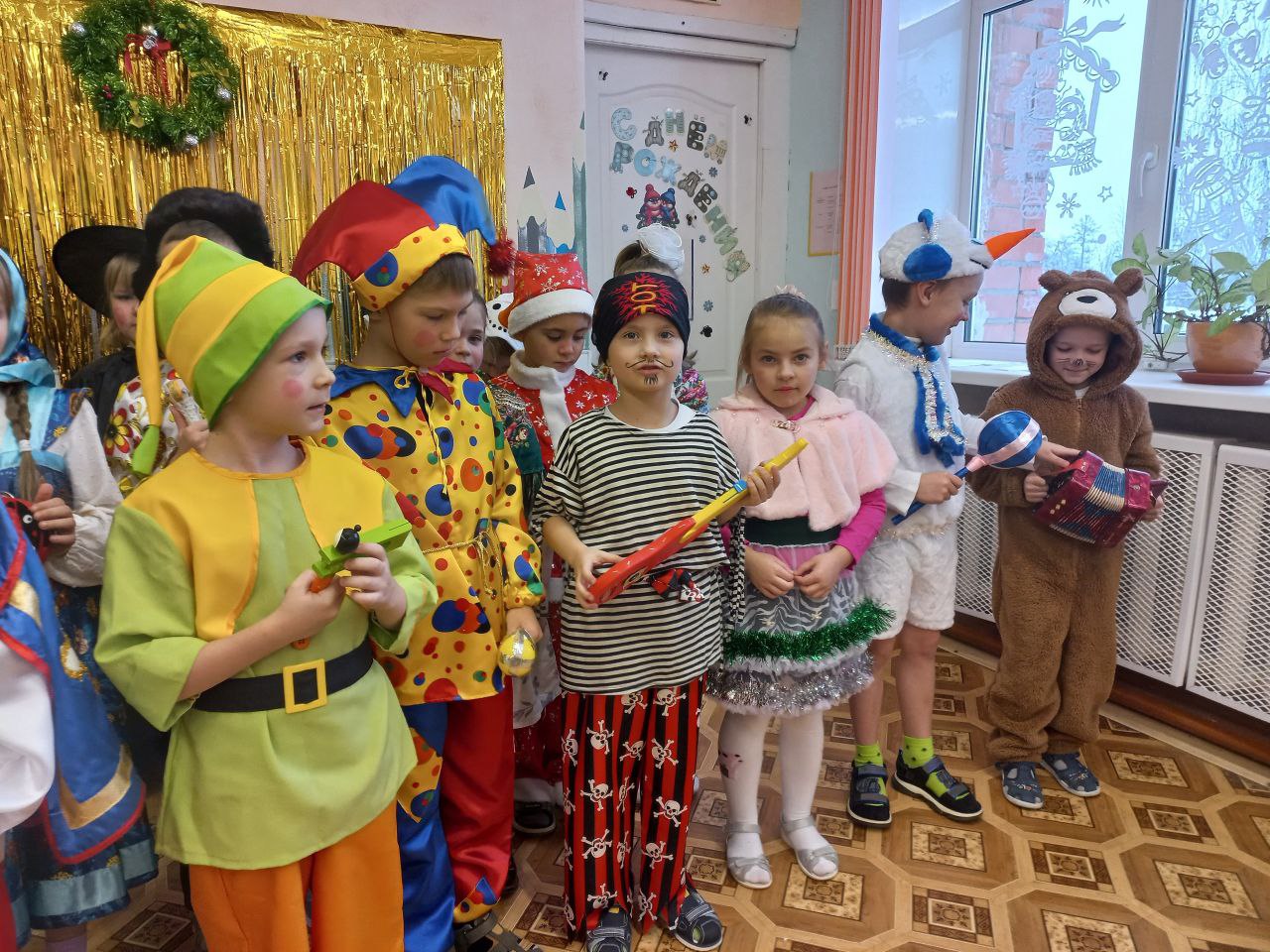 Юные артисты отправились в путешествие по детскому саду, заглядывая в каждую группу.