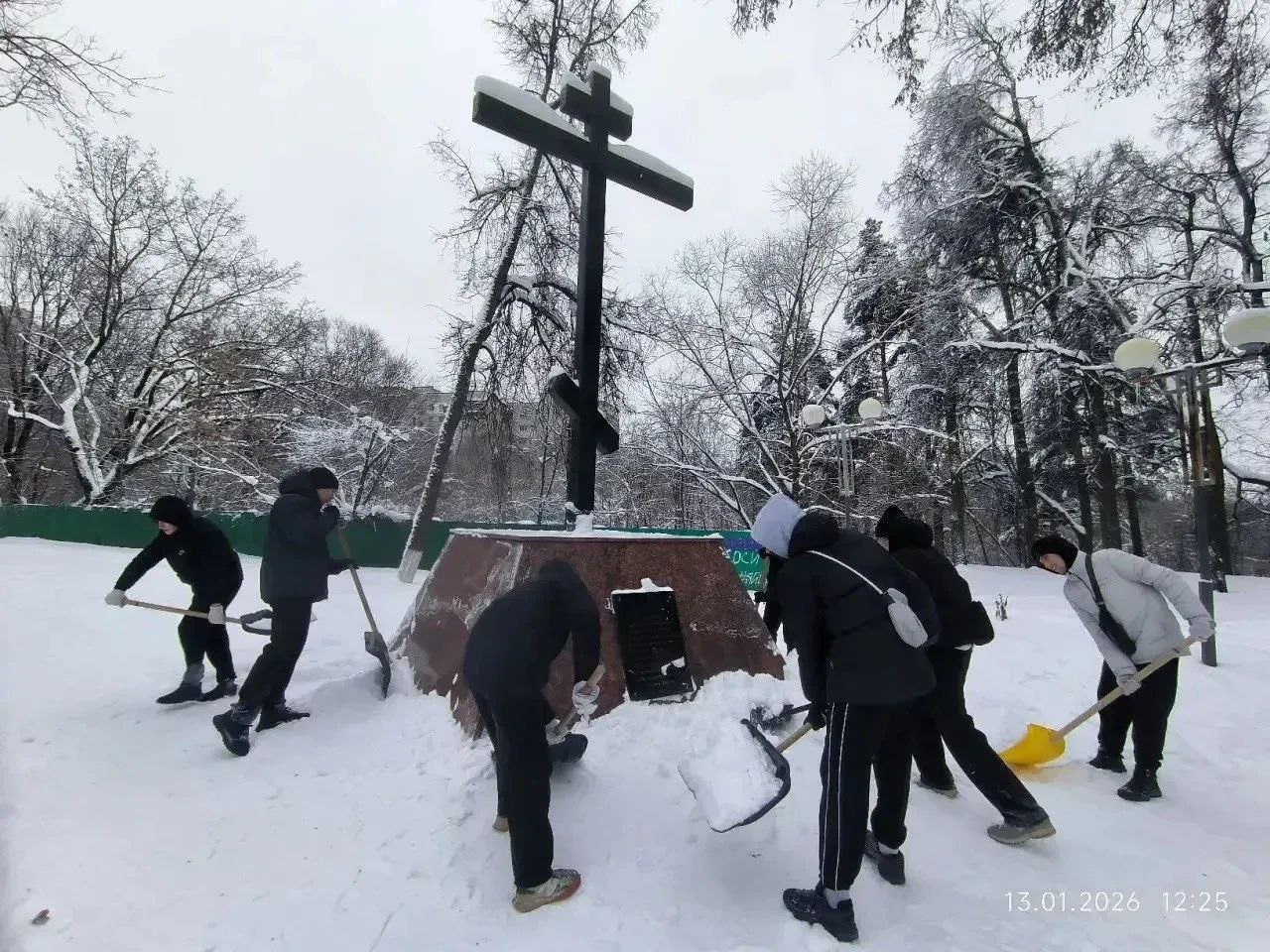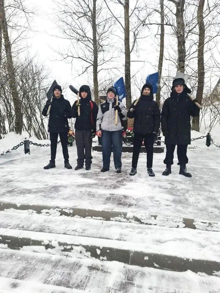 Молодёжь очистила от снега памятные места города