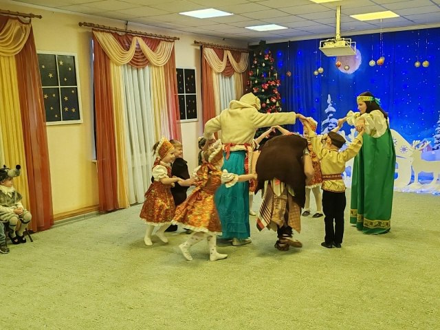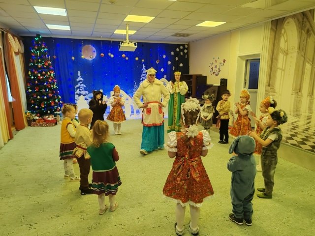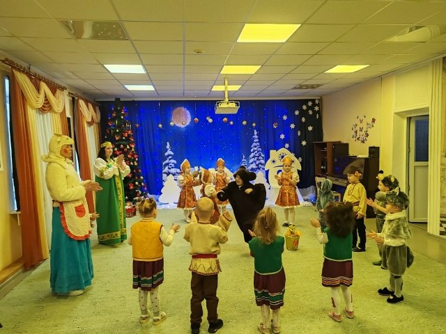 В МБДОУ-детский сад №12 «Дюймовочка» состоялся традиционный праздник «Рождественские святки». Дети вместе с Бабой Ягой и Козой водили хороводы, играли в народные игры, устраивали веселые переплясы, пели песни и частушки. В завершении праздника ребята отправились колядовать по детскому саду. Они пели песни, поздравляли хозяев, желали им всего наилучшего и, конечно же, просили угощения. И каждый был рад поделиться своими сладостями.