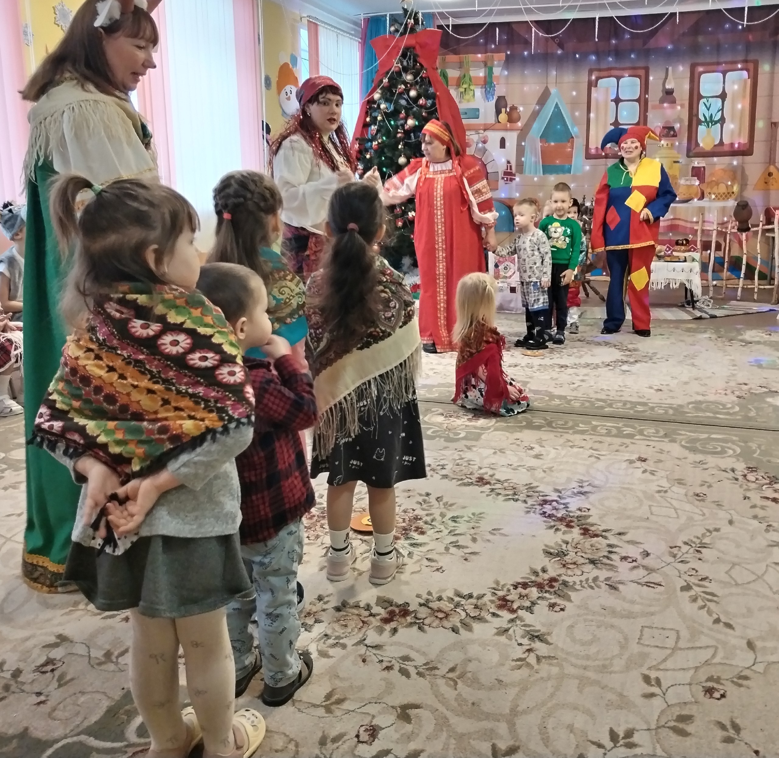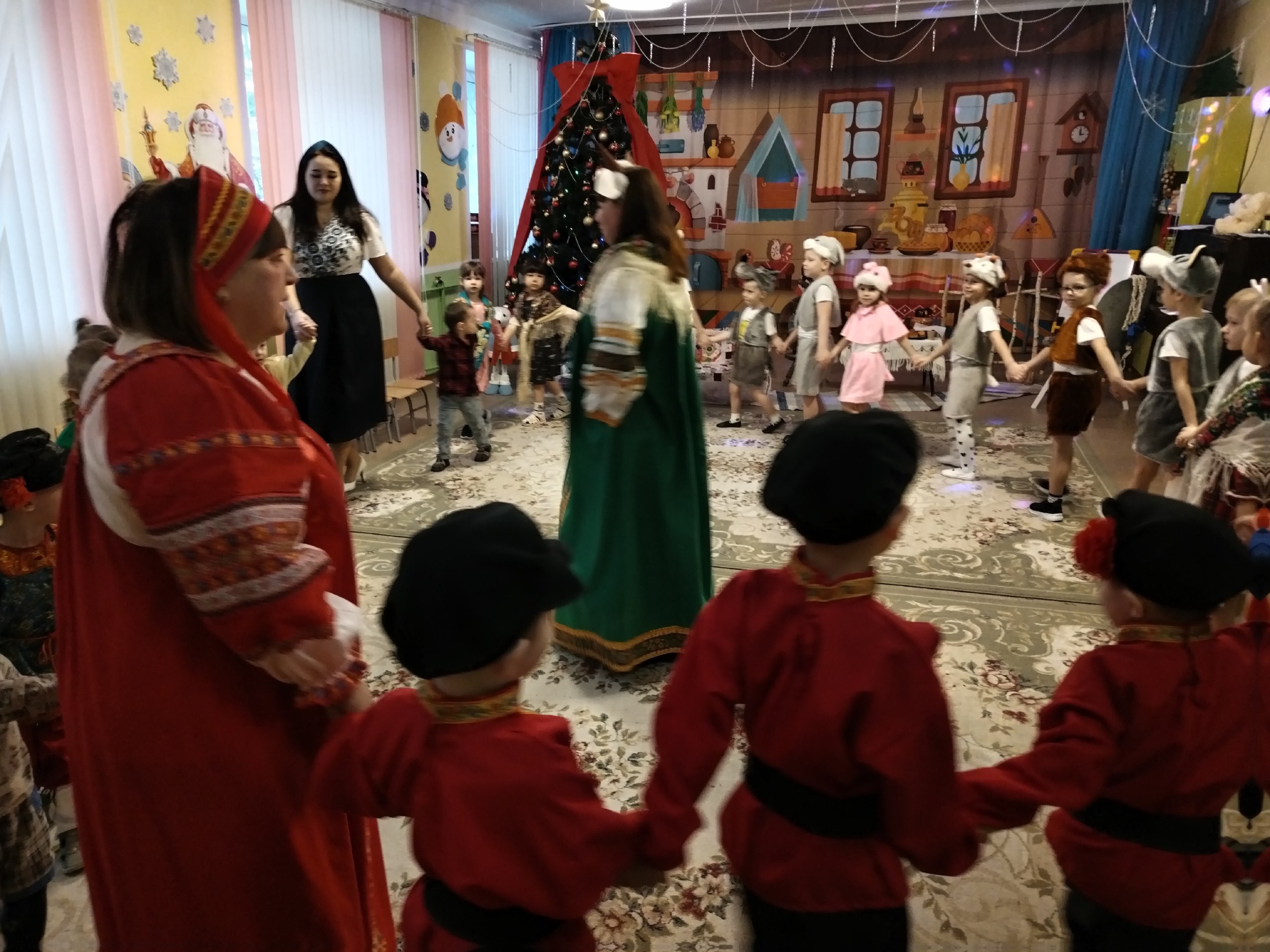 В МБДОУ — детский сад № 14 «Рябинка» прошло праздничное гуляние, посвящённое одному из самых значимых и любимых праздников на Руси. Этот день богат разнообразными обычаями, обрядами и приметами, которые передаются из поколения в поколение. Святки, совпадающие с Новым годом, — это время радости и веселья для детей. В этот период устраиваются новогодние ёлки, переодевания, сказочные превращения, чудеса и всеобщее ликование.
