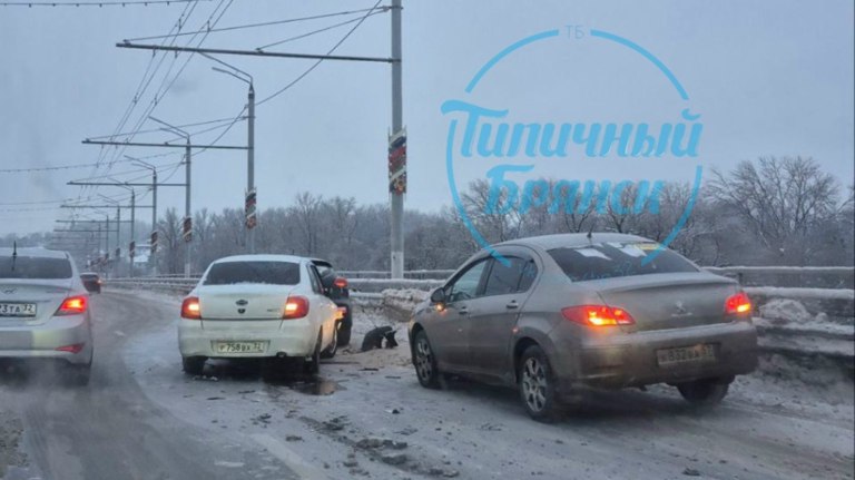 Въезд в Бежицу встал в пробке из-за массового ДТП на Первомайском мосту