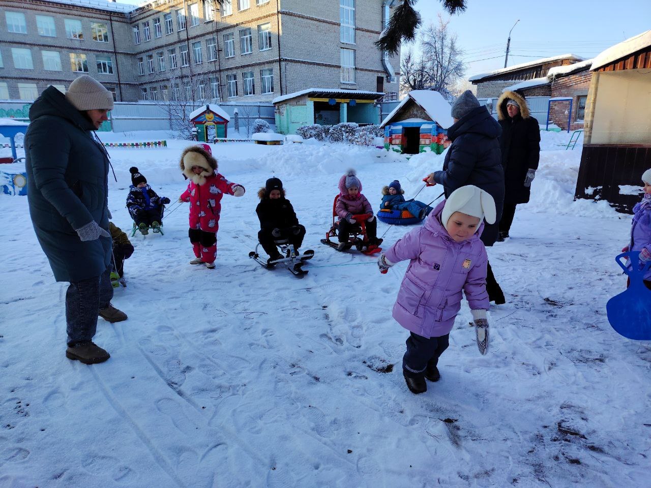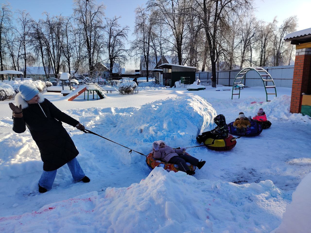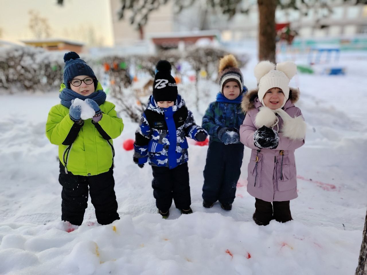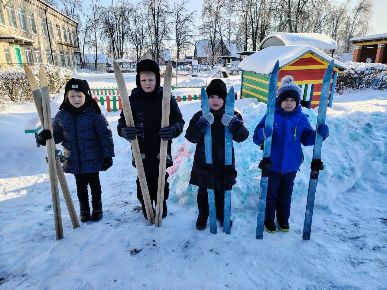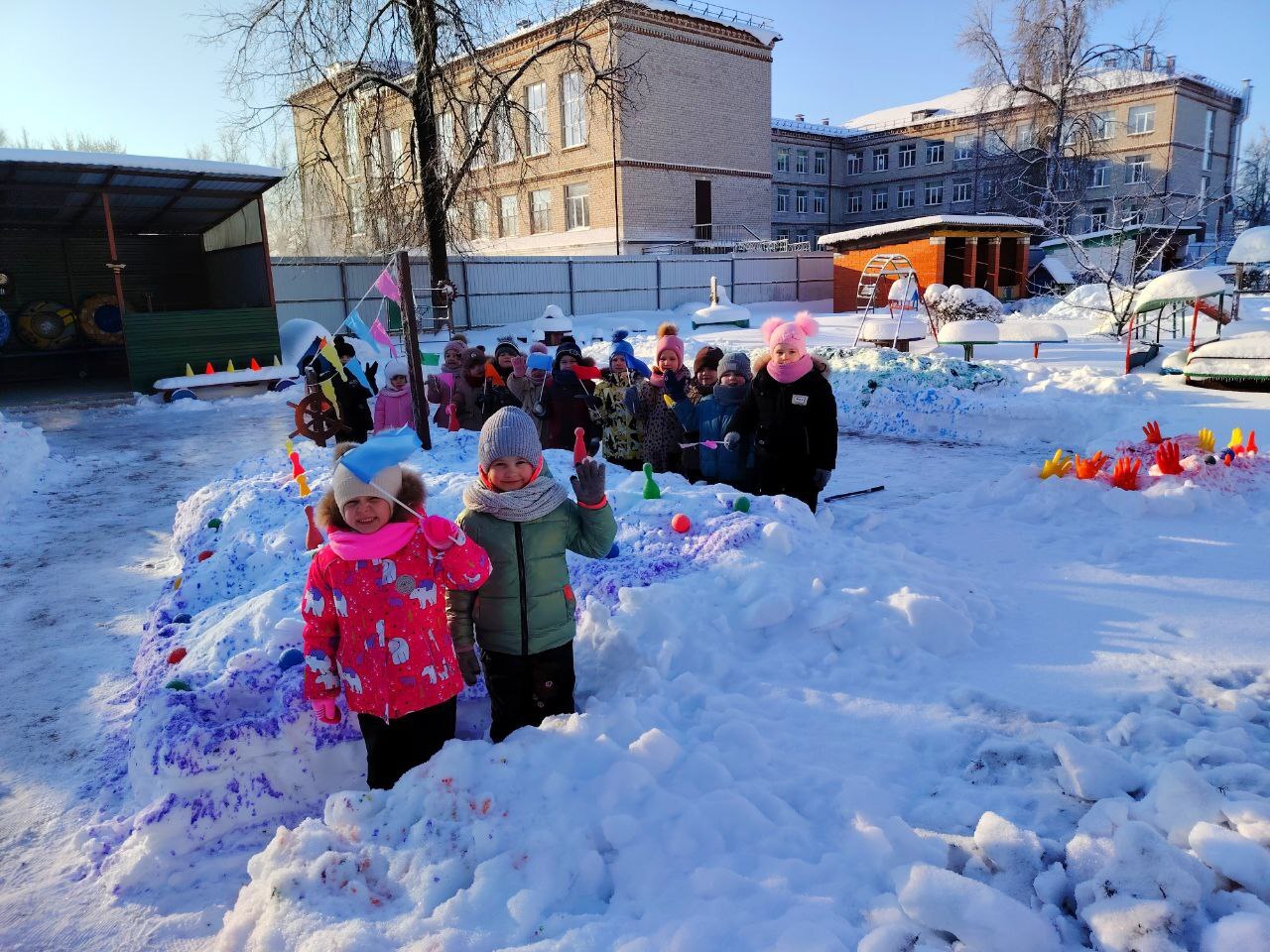 Дети с визгом и смехом покоряли снежные горки на ватрушках и санках, ощущая чистый восторг! Строили неприступные крепости, создавали волшебные ледяные фигуры и раскрашивали яркими цветными льдинками, которыми потом украшали участки. А ещё ходили на лыжи и играли в хоккей!
